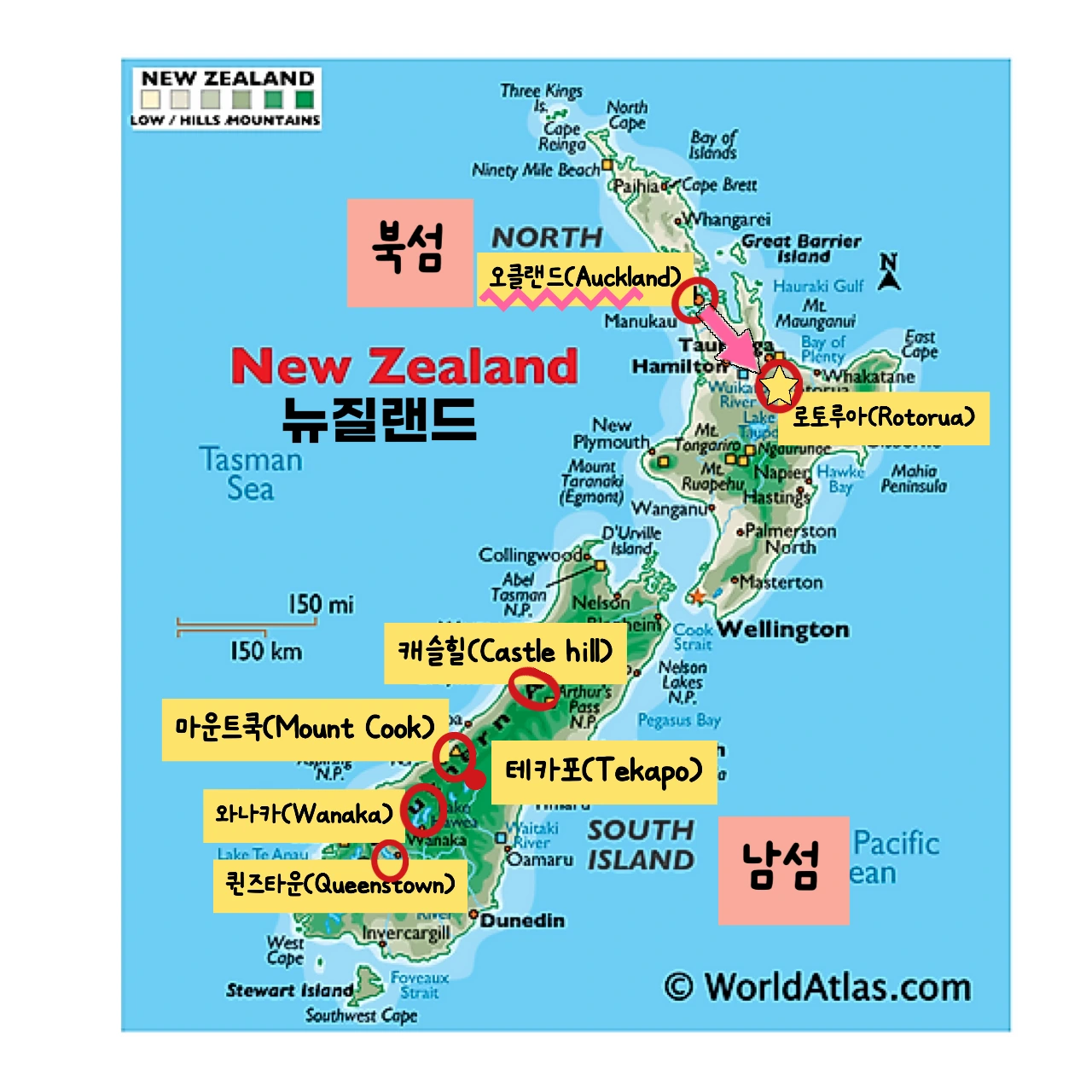 ☞ 오클랜드(Auckland)와 로토루아(Rotorua) 사이에는 고속도로가 연결되어 있다. 가능하다면 고속도로를 이용하길 바란다.