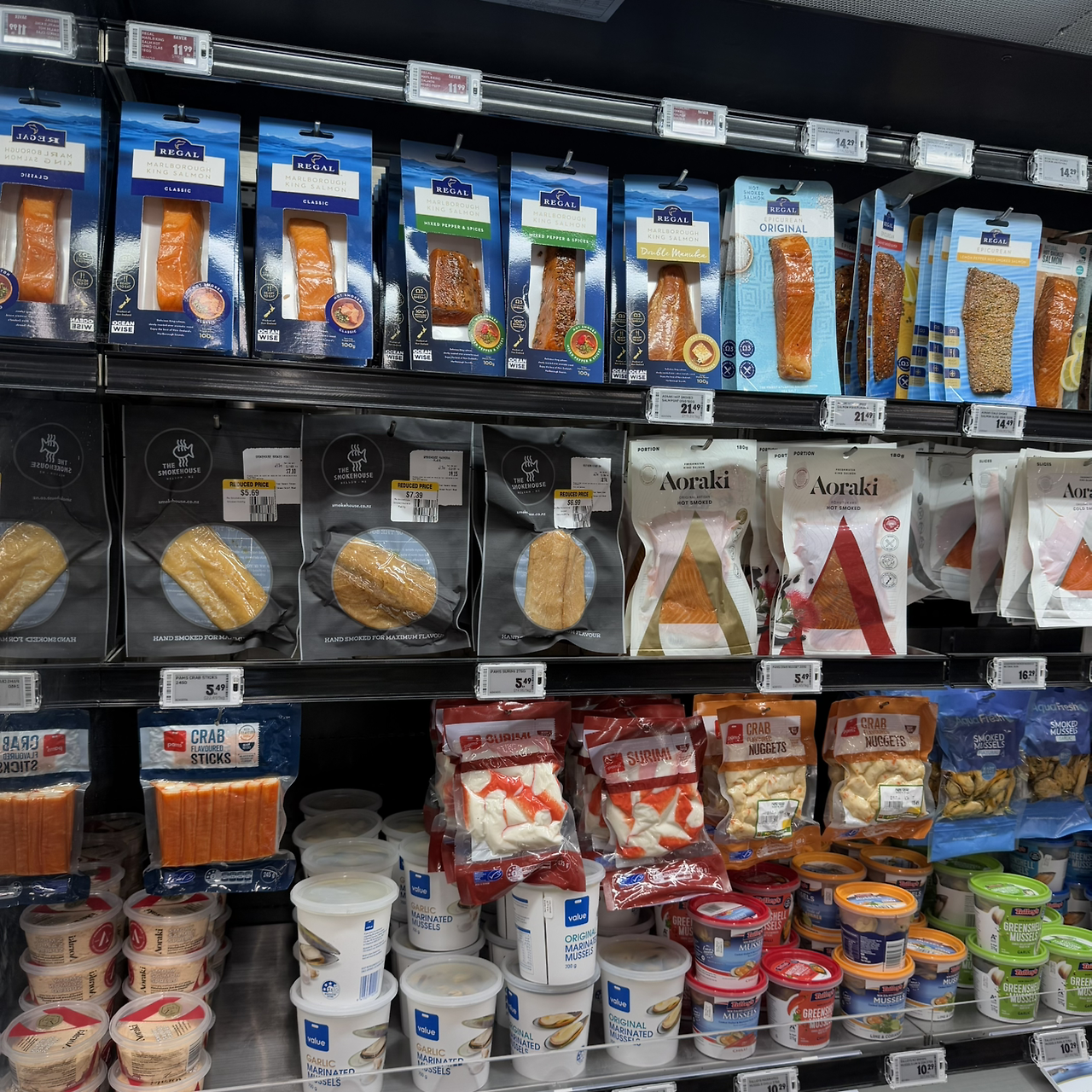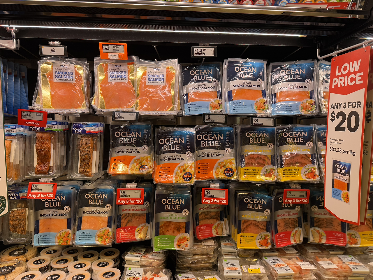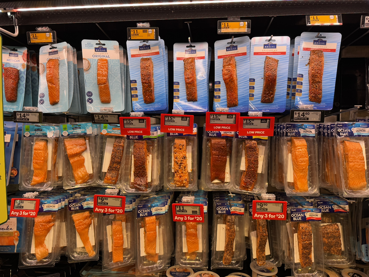 다양한 훈제연어들. 연어 소비가 많은가 보다. 다양한 훈제 연어들이 있었다.