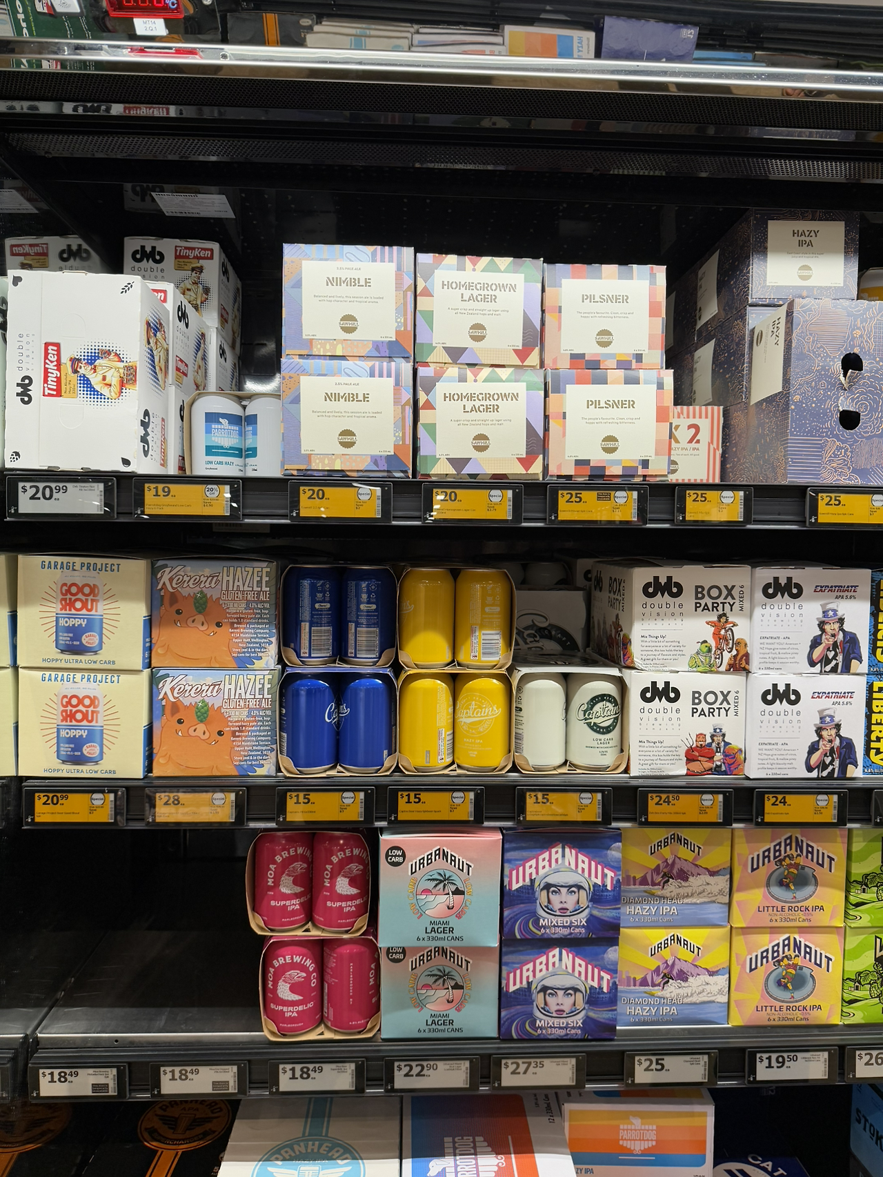 좌) 맥주 코너. 우) 뉴질랜드 음료수 L&P.