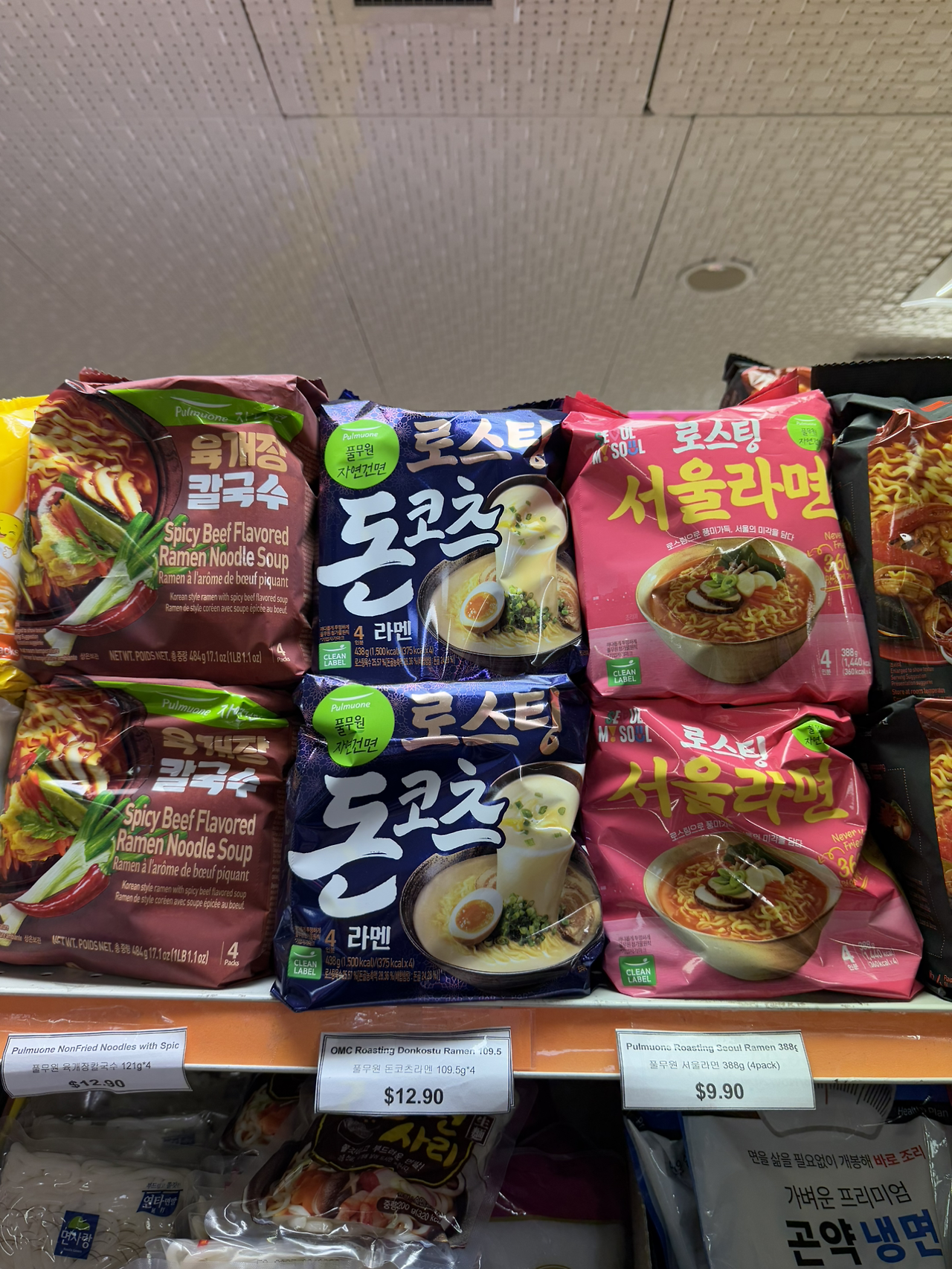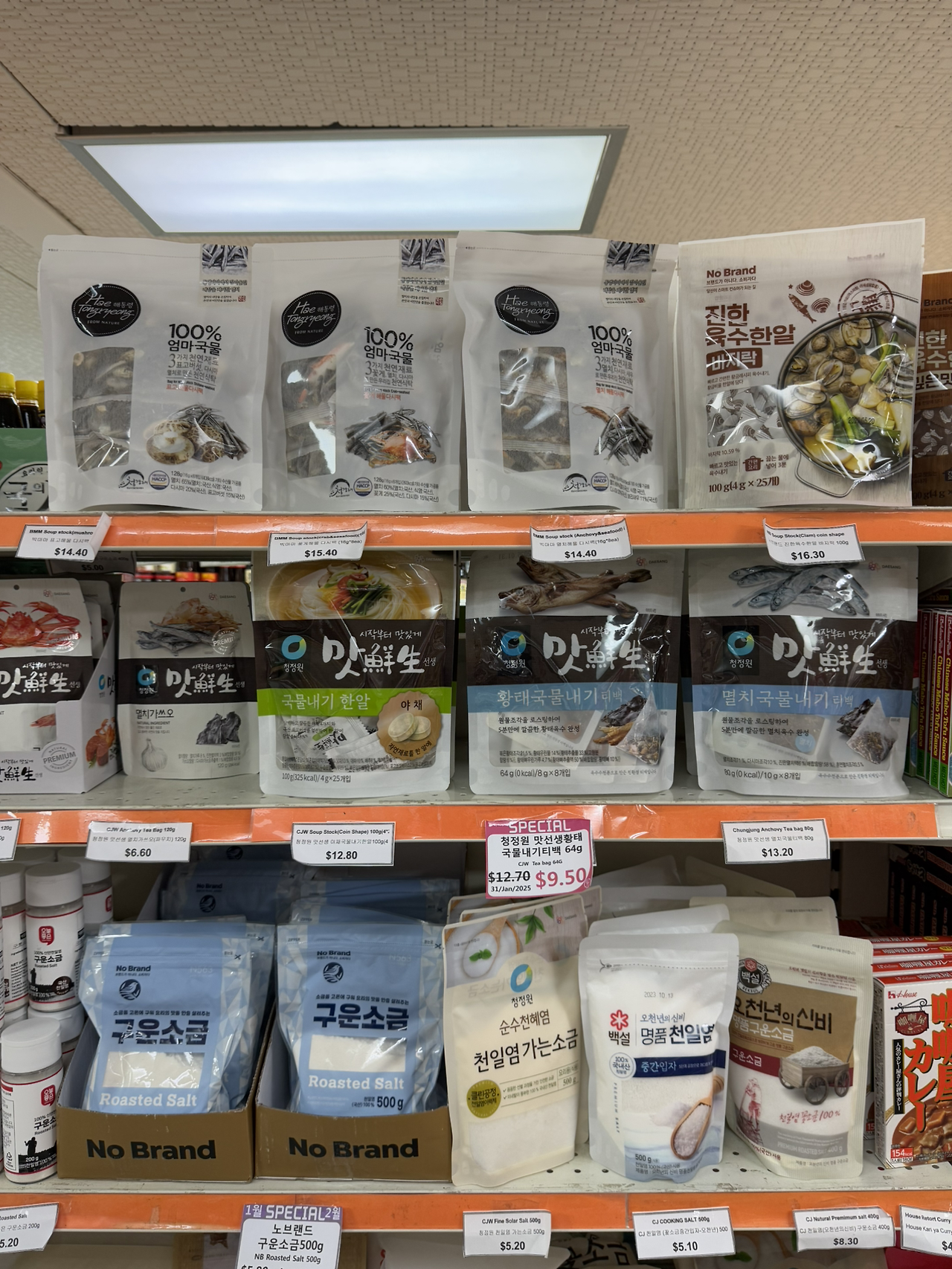 좌) 코인 육수, 육수 팩도 있구요. 우) 라면 종류도 다양합니다.