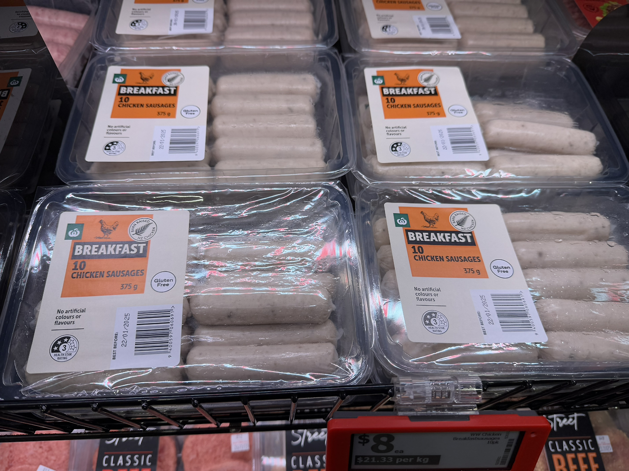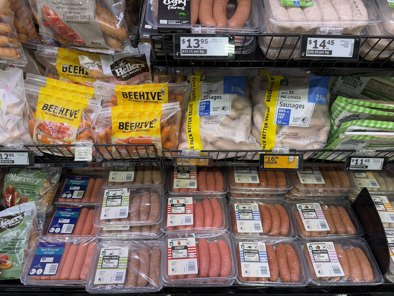 소세지들. 우) 닭가슴살 소세지. 대용량으로 있다. 좌) 양고기 소세지도 있었다. 우) 오리 가슴살.