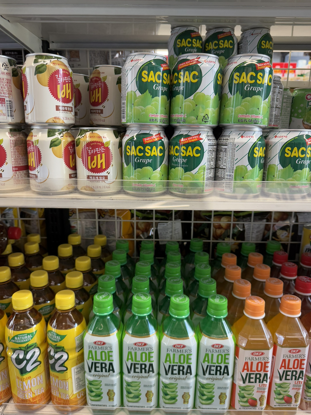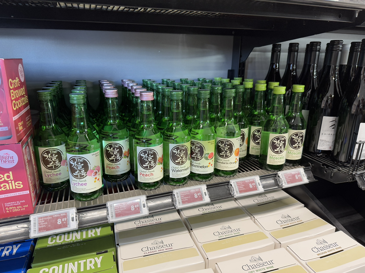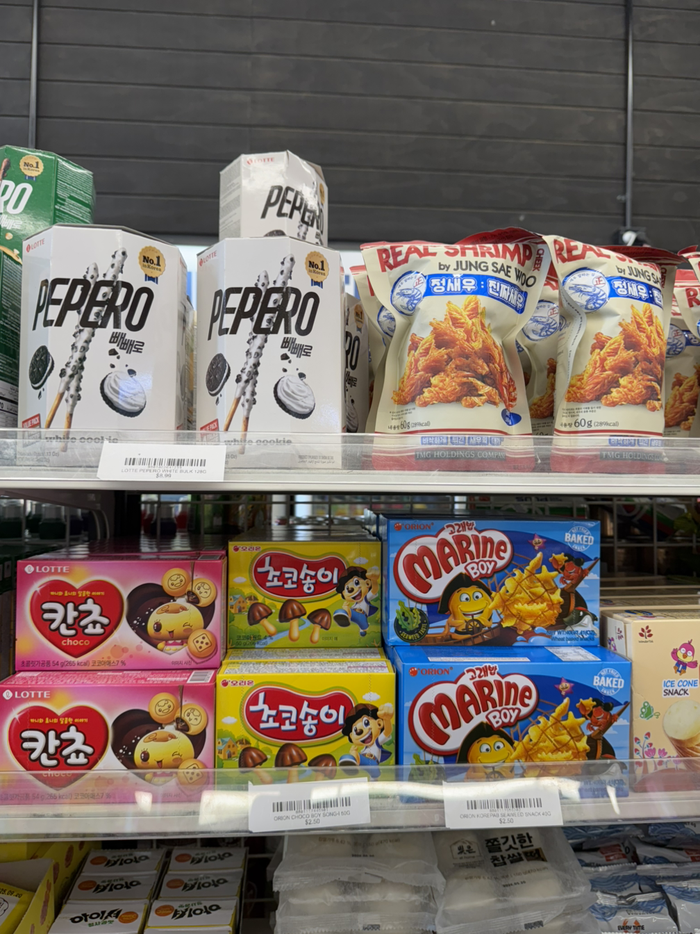 일반 마트 였는데도 한국 제품들이 보여서 찍어봤다. 좌) 일반 마트에 소주도 있네? 우) 한국과자와 김.