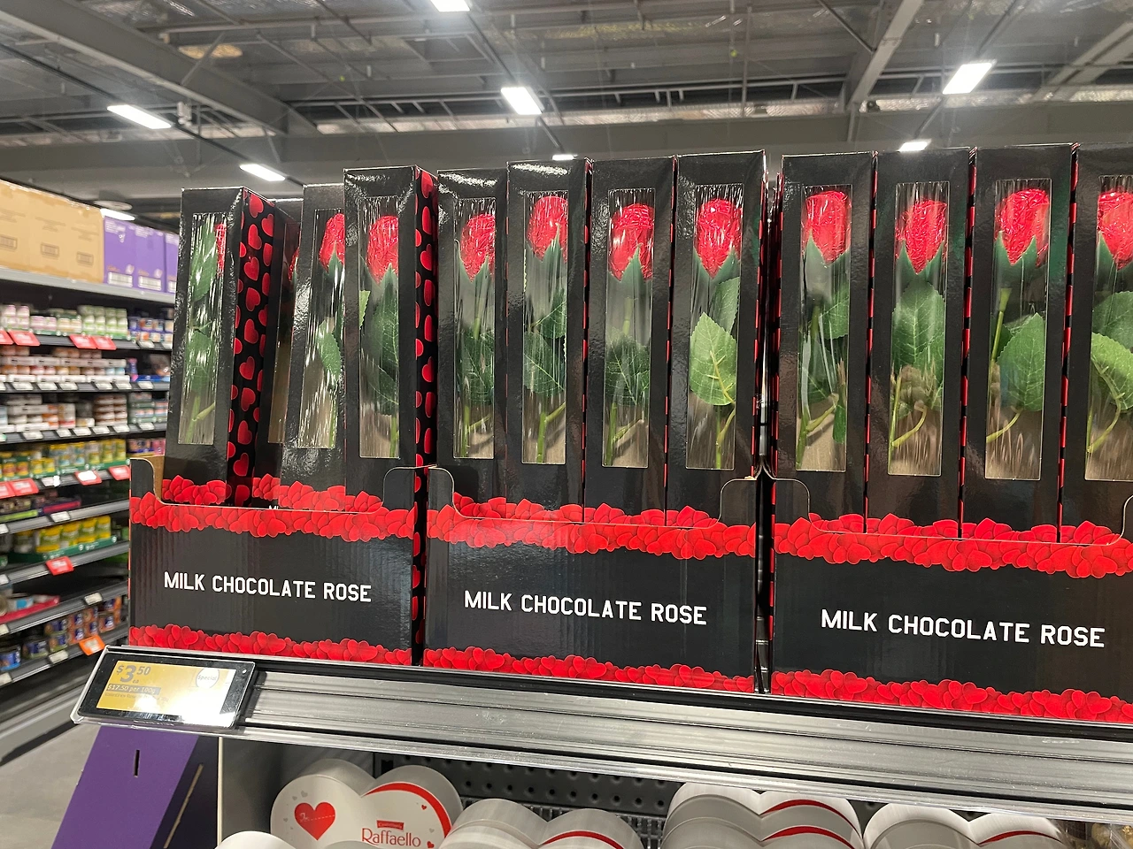 밸런타인데이가 다가오고 있어서 장미꽃 모양의 초콜릿이 있었다.