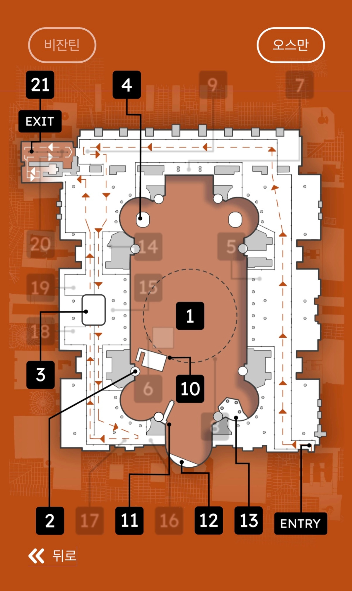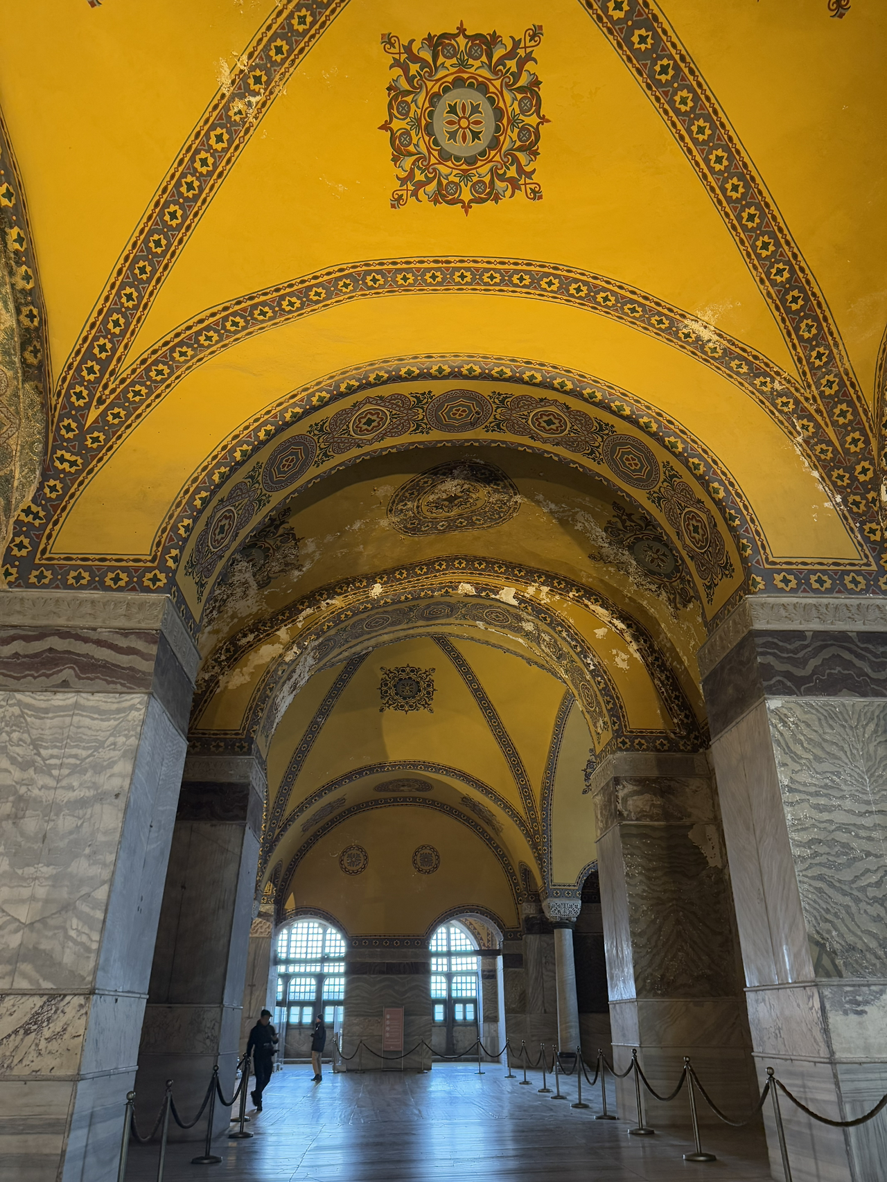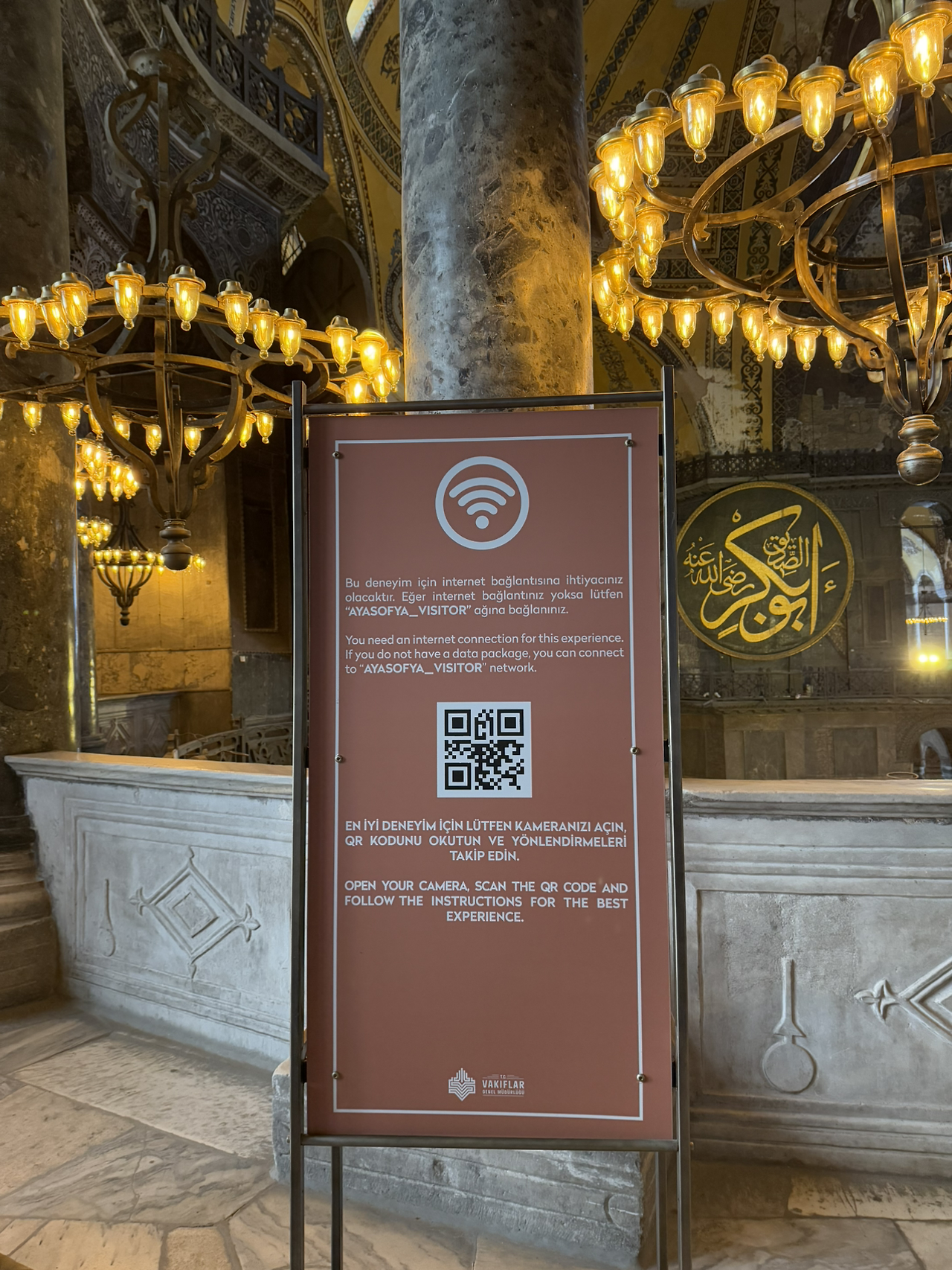 아야 소피아는 관광객은 2층만 볼 수 있다. 1층은 이슬람교 예배당이 있고, 2층은 박물관으로 되어 있다. 2층 구석구석에 남은 역사의 흔적을 따라가 본다. 오디오 가이드가 없어도 입구에 QR 코드가 있다. 핸드폰으로 QR 코드를 스캔하면 아야 소피아 내부에 대한 설명을 들을 수 있다.