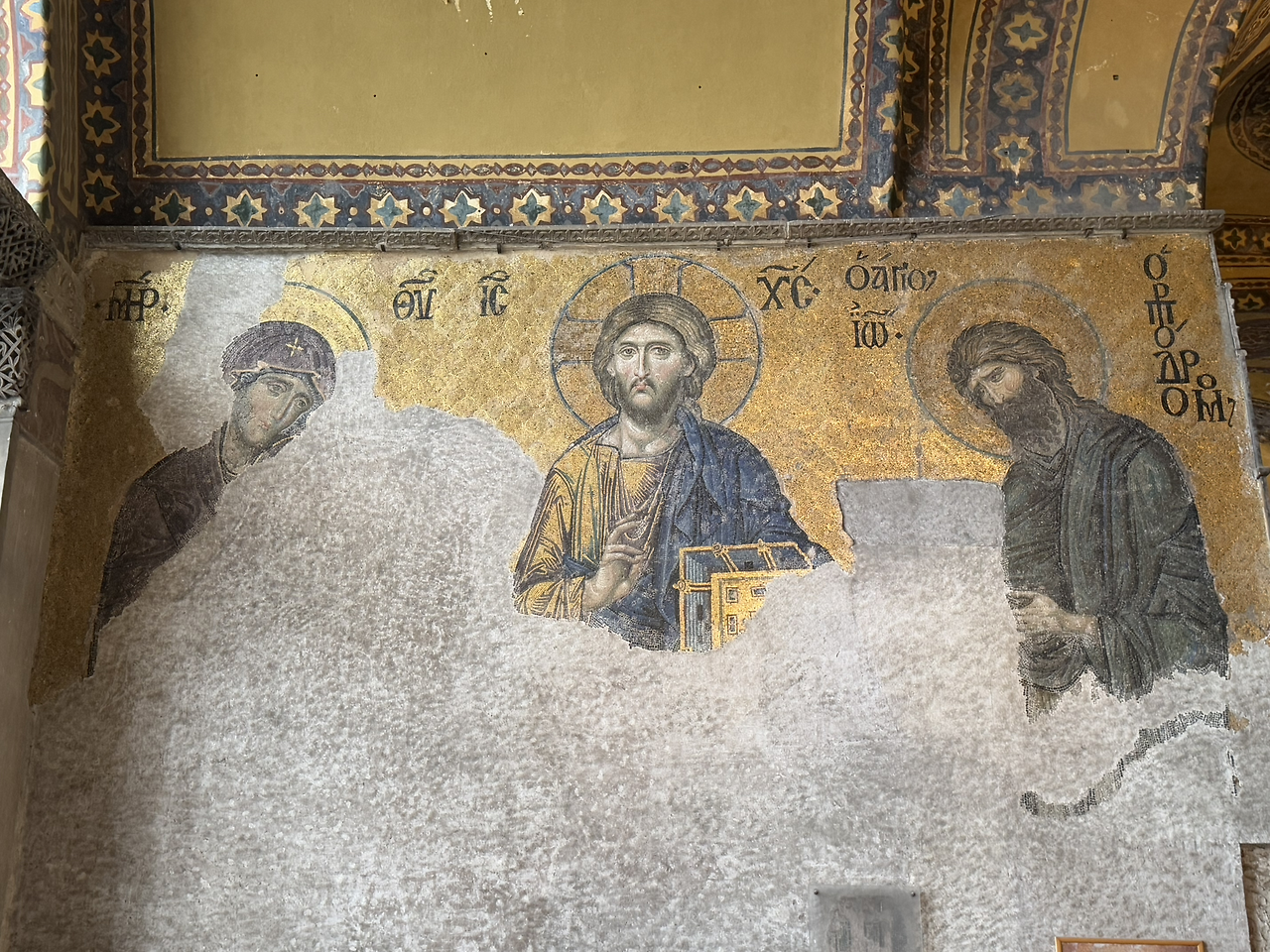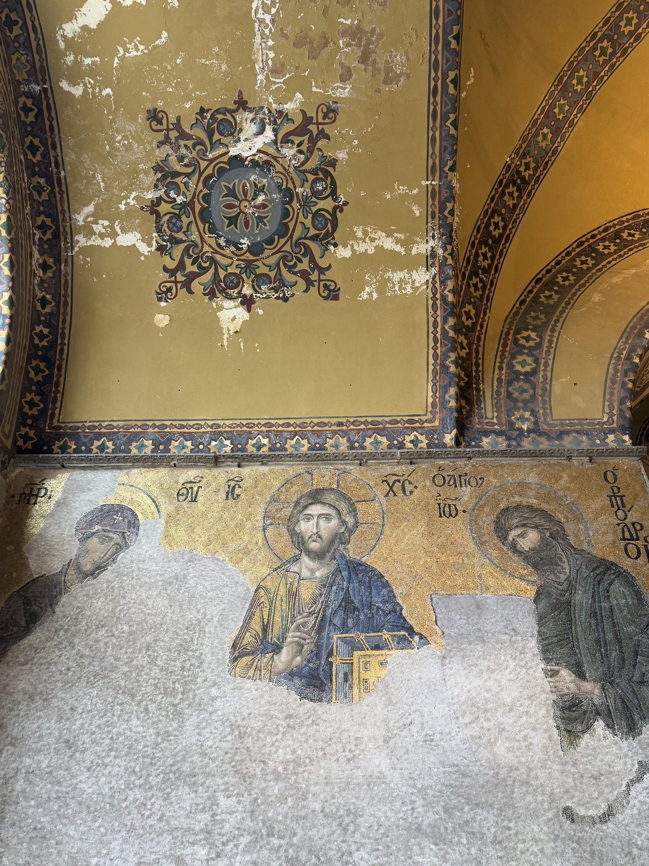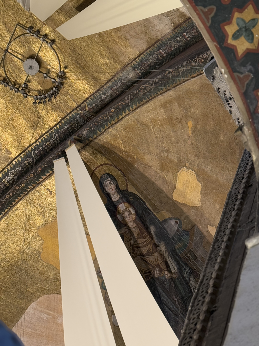1층에는 커다란 아랍어 글씨와 이슬람 사원의 모습이 보이지만, 2층에는 일부 성화들이 구석구석 남겨져 있다. 회반죽으로 가려진 성화들도 있지만 모자이크 형태로 보존된 성화들도 있었다.