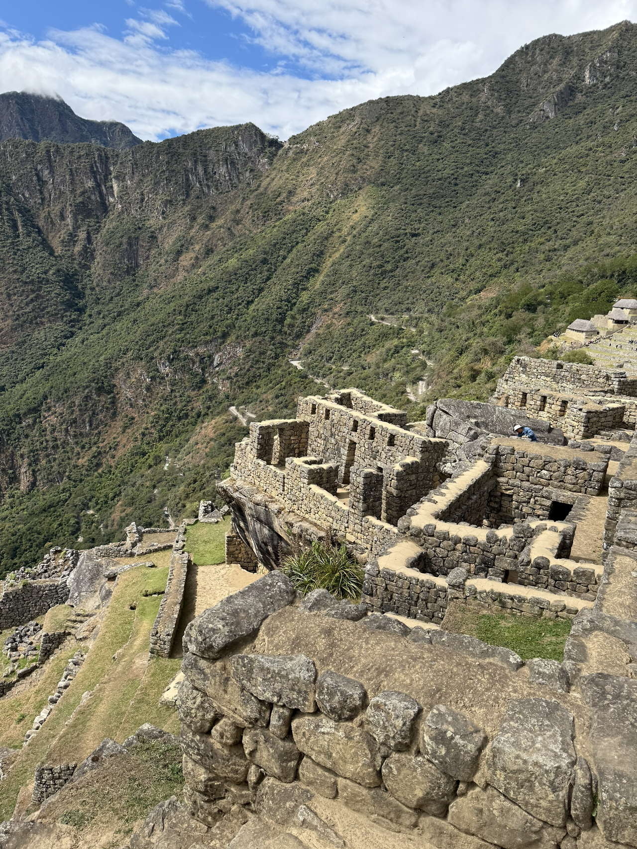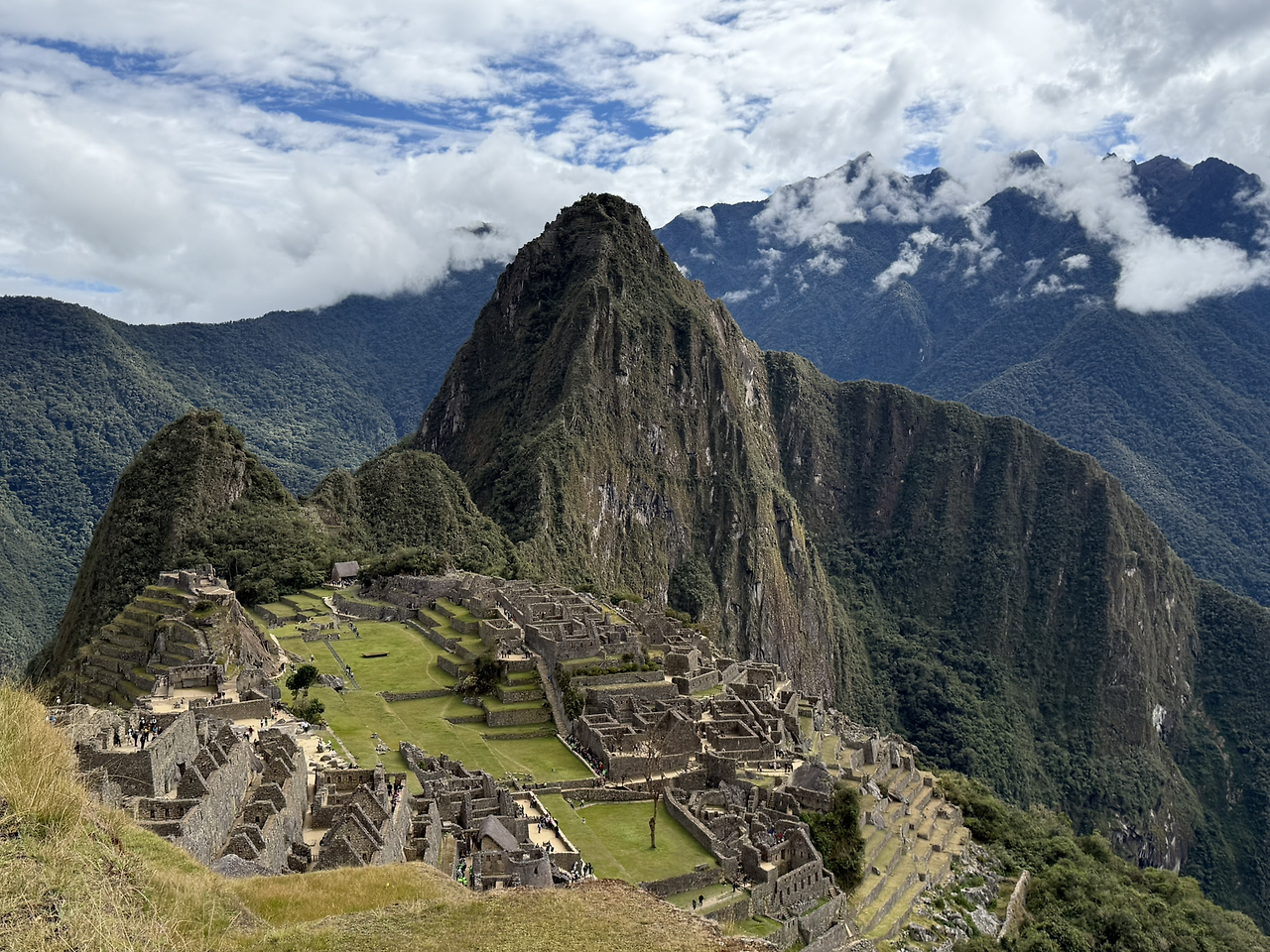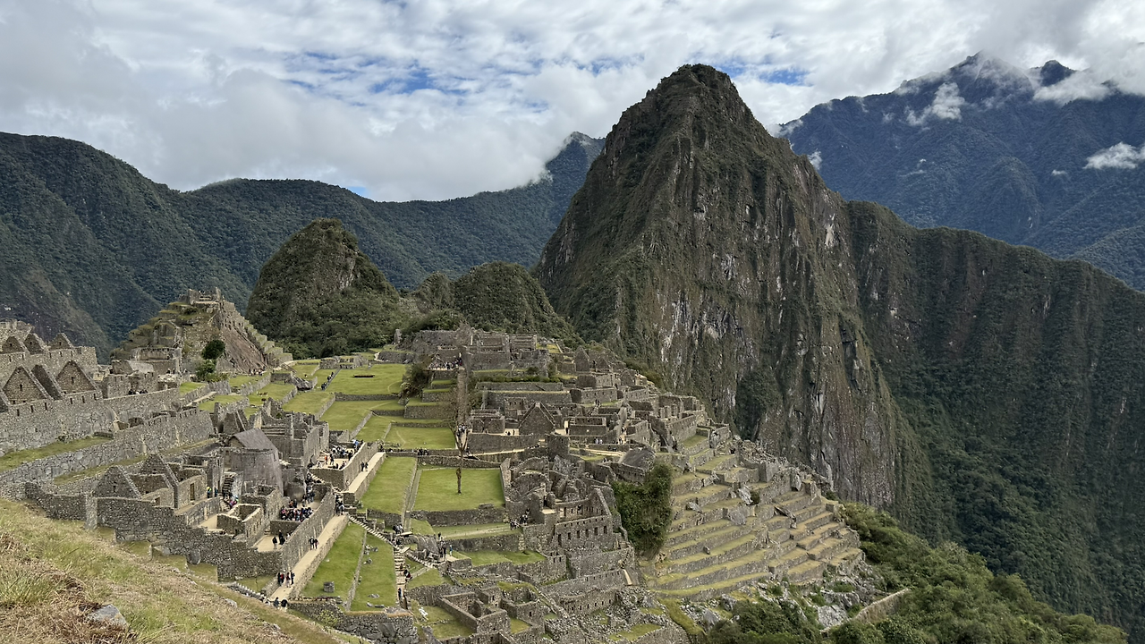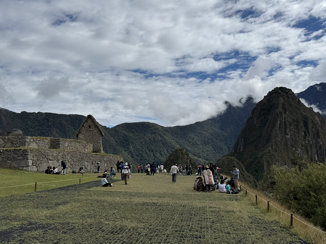 마추픽추 사진을 양껏 찍고 이제 계단을 올라 망지기 집으로 향했다. 망지기 집은 마추픽추를 관리하기 위해 있던 곳이며 도시 전경을 한눈에 내려다볼 수 있는 전망대 역할을 했다. 지금은 아마 마추픽추의 가장 전망 좋은 곳이 된 것 같다. 망지기 집에 도착하자 평원처럼 넓은 잔디가 있었다. 사람들이 삼삼오오 모여 잔디 위에 앉아 쉬고 있었다. 돌로 만들어진 거대 도시의 전경과 산세가 어우러진 장관이 한눈에 들어왔다.
