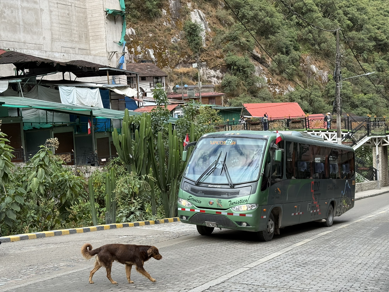 한 시간 정도 기다린 끝에 마추픽추행 버스를 탈 수 있었다. 버스는 약 20분 동안 굽이굽이 산길을 올라간다. 점점 마추픽추가 가까워지는 게 느껴진다. 버스에서 내려 먼저 유료 화장실부터 들렀다. 마추픽추 입구에는 물품 보관소와 화장실이 있다. 마추픽추 안에는 화장실이 없기 때문에 들렀다 가길 바란다. 금액은 2 솔이다. 화장실 앞에도 줄이 길게 늘어서 있었다.