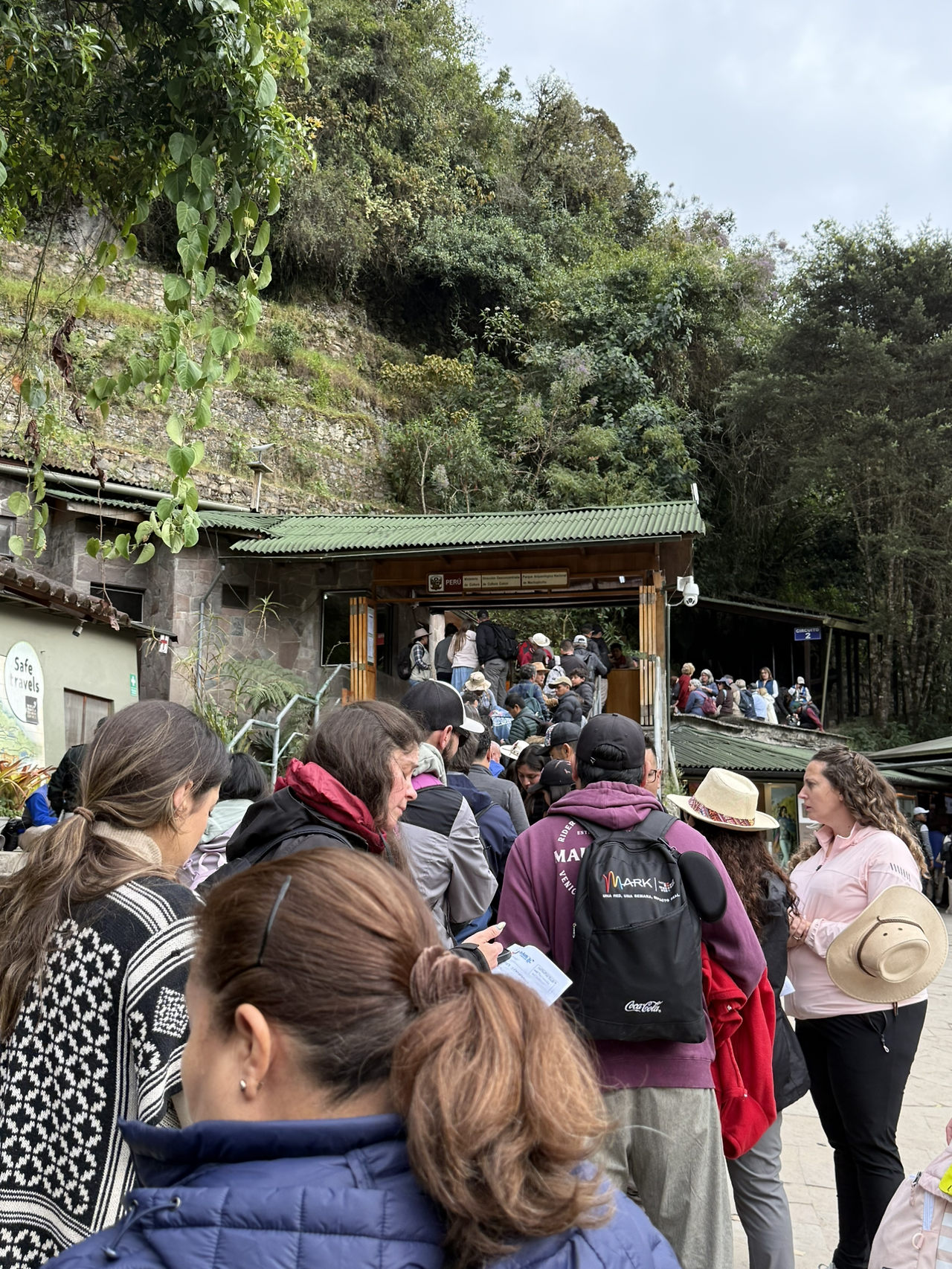 이제 진짜 마추픽추 입장을 해보자! 유료 화장실 위치에서 조금만 더 계단을 올라가면 입구가 있다. 그런데 와, 이거 뭐냐? 여기도 줄이다. 나는 8시 입장권인데 이미 시간은 9시가 넘었다. 비슷한 시간대면 유동적으로 입장이 되는 것 같다. 20분 정도 줄을 기다리니 드디어 입장을 했다. 마추픽추 입구에서 여권 확인도 같이 하니 잘 챙기길 바란다.