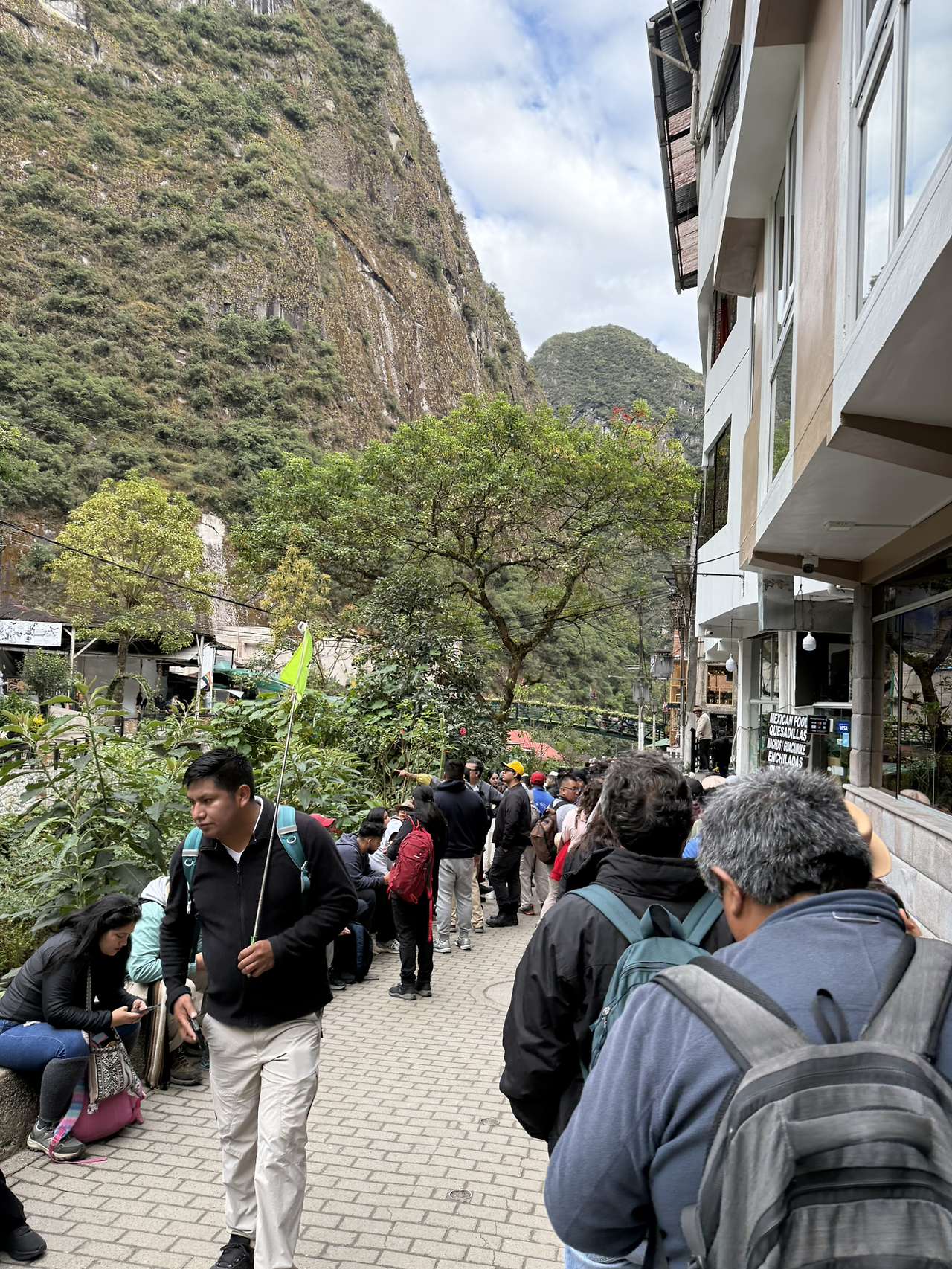 서킷 별로 화살표를 따라 일방통행을 하면 다시 마추픽추의 입구로 연결된다. 아구아스깔리엔떼스로 내려가는 버스도 줄을 서서 기다렸다. 다행히 내려가는 버스는 줄을 오래 서지 않아도 되었다. 아구아스깔리엔떼스 마을에 도착하여 숙소를 향해 가고 있는데, 분장을 한 사람들과 악기를 연주하는 사람들이 나타났다.