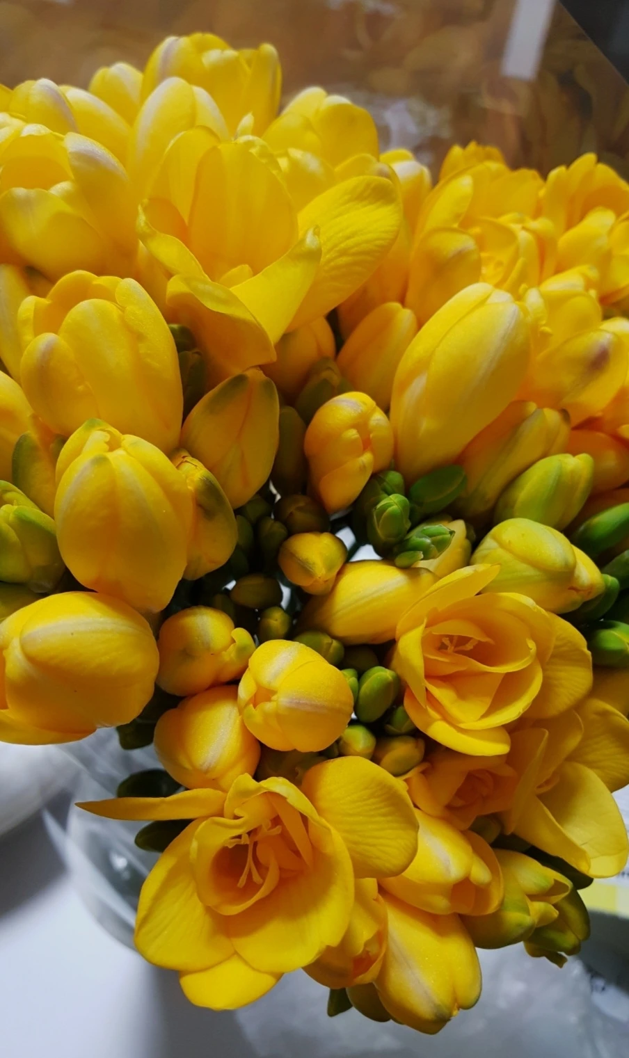 덧. 수선화가 여의치 않으면, 생전 처음으로 선물을 해 본 안개꽃에 둘러싸인 프리지아를 사다 365일 비어 있는 커다란 유리 꽃병에 꽂아 둘 것이다.