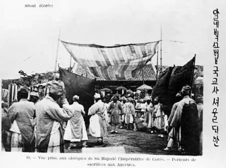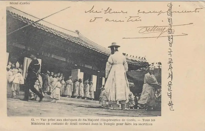 한국에서 찍은 사진을 프랑스로 가져가 인쇄하여 제작하였으며 1900년 파리에서 열린 만국박람회 (Exposition universelle) 때 한국관 기념품으로 팔았다. 일부는 우리나라에 가져와 대한제국 독수리 보통 우표(마지막 사진)를 붙여서 판매하였다. 48장 중 명성황후 국장 사진이 꽤 된다.