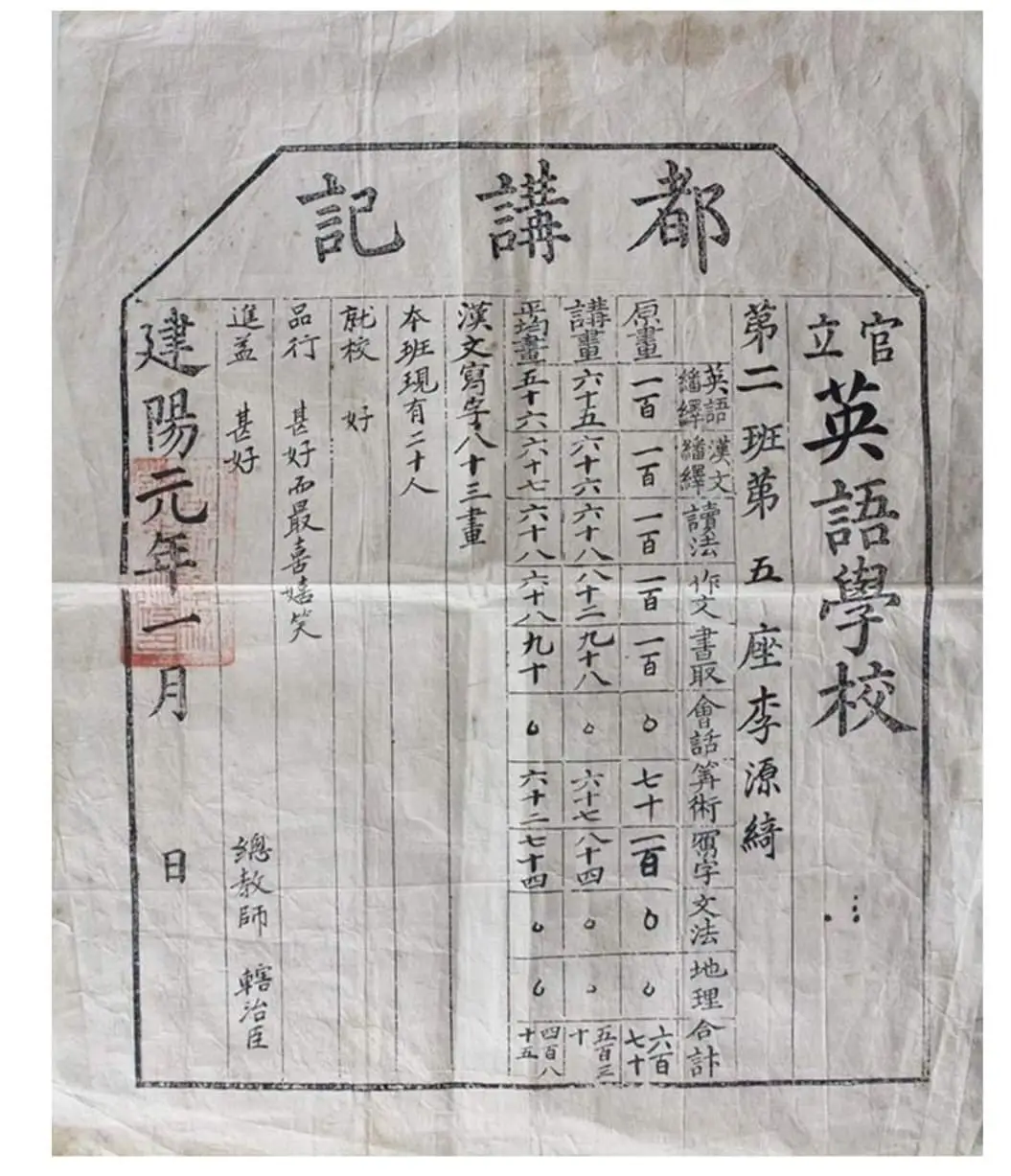 1896년 이원기(2학년 3반 5번) 도강기(都講記 : 성적표)