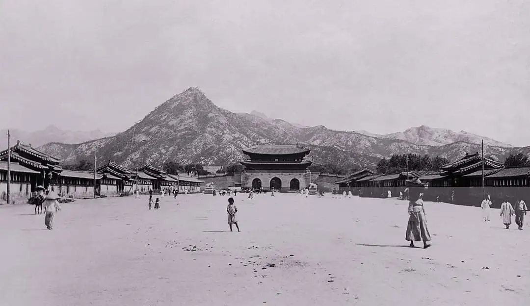 우선 저기 보이는 문은 돈화문이지 광화문이 아닐뿐더러 육조거리에 초가가 즐비한 것은 이상하지 않은가. ‘북궐’에 대한 몰이해가 그렇게 오랫동안 잘못을 승인해왔나 보다.(옆 사진 광화문)