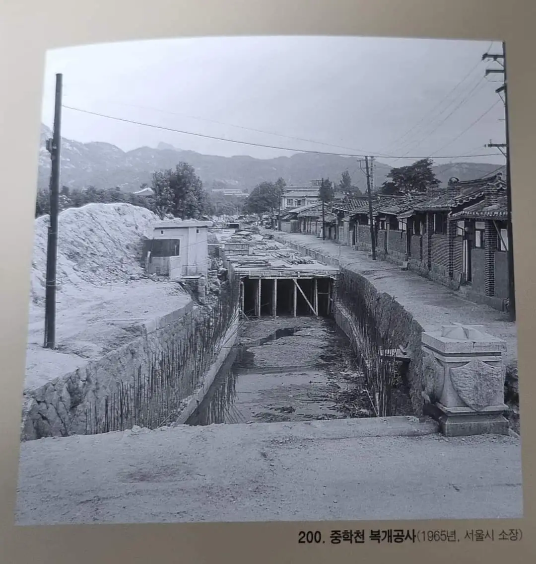 그런데 한 가지 걸리는 게 있다. 김수영이 시에서 "지금은 매립한 개울"이라 한 것이 이상한 것이다. <사진 4>에 따르면, 중학천이 매립된 것은 1965년이고, 시가 지어진 것은 1964년이니말이다.