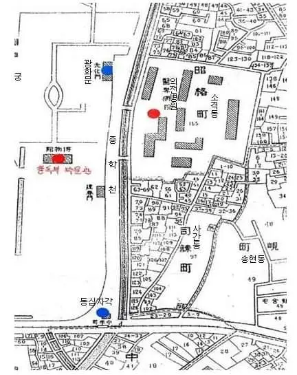 오래 전부터 “인환네 처갓집 옆”이 어디쯤일까 궁금했었다. 찾아보니, 거기는 세종로 135번지로 지금 교보문고 본점 뒤쪽 어디쯤일 것 같다. 거기 어딘가의 개울, 당시는 매립한 그 개울에서 아낙네들이 빨래를 하고 있었다고 했다. 그 개울물은 삼청동에서부터 내려와 지금의 민속박물관 앞을 지나 교보문고 뒤쪽을 넘어 청계천으로 흘러들어 갔을 것이다.