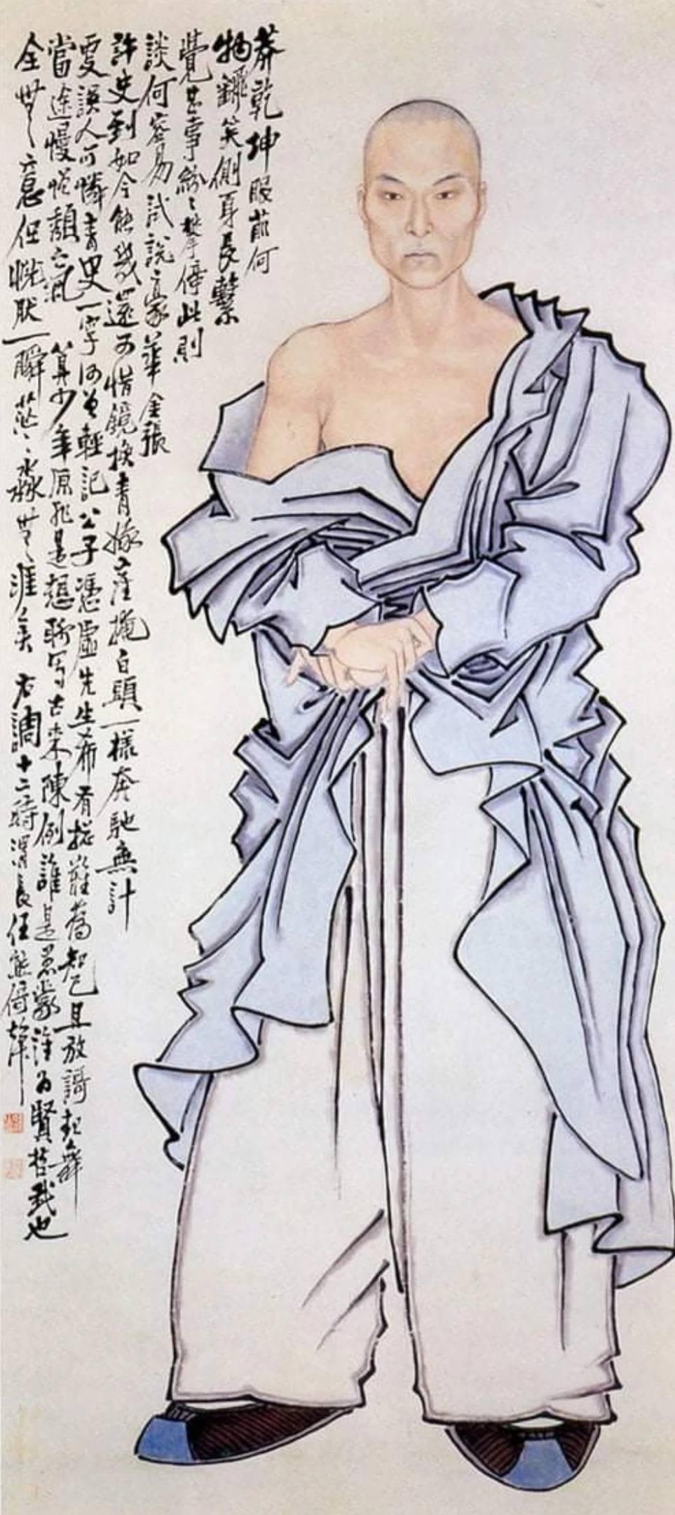 실물 크기(177.5×78.8cm)로 그렸다. 동양 삼국에서 이런 초상화는 보지 못했다. 옆에 써놓은 제발(題跋) 또한 강렬하다.