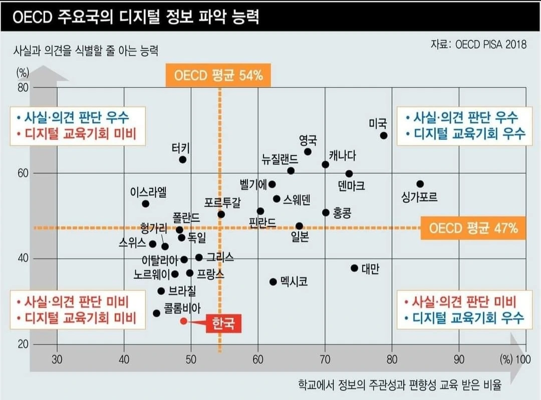 OECD 자료이니 어느 정도 믿을 수 있을 것이다. 그동안 우리나라는 “IT강국”이라고 떠들어 왔는데, 결과는 이 모양 이 꼴이다.