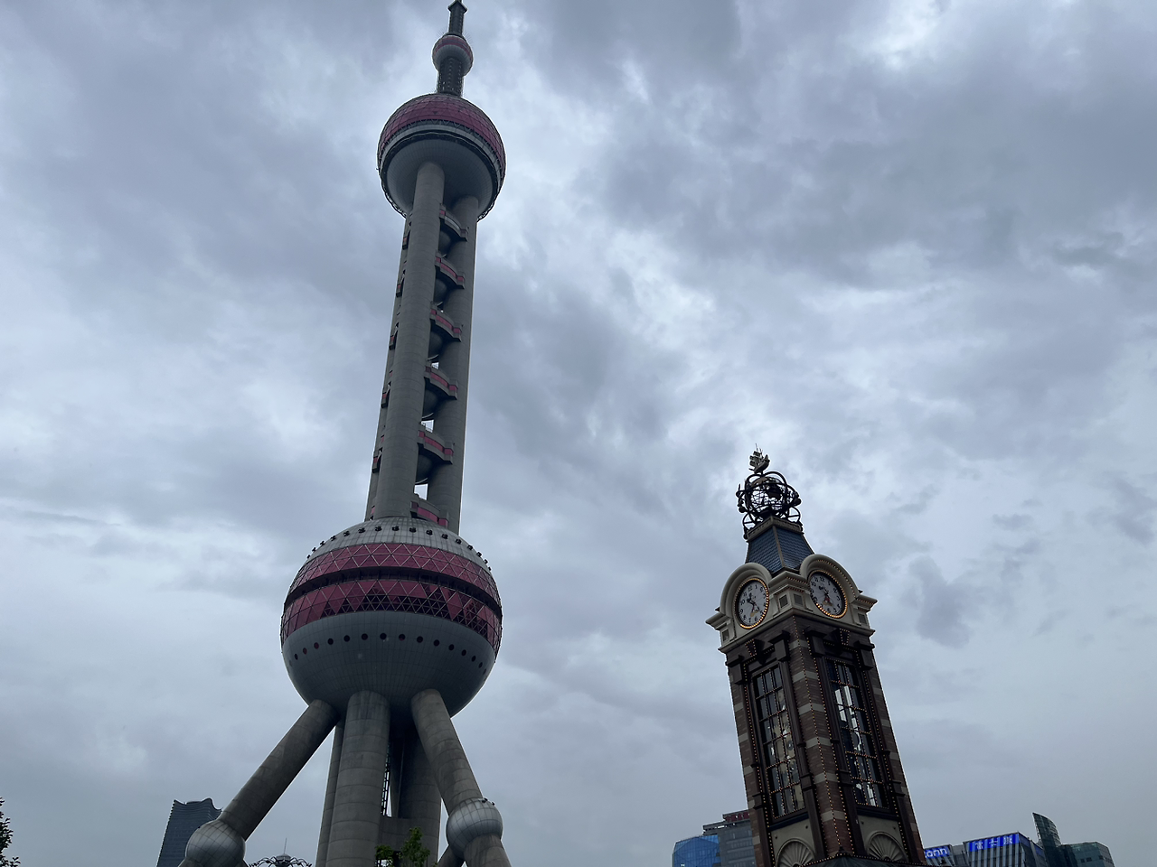 첫날 동방명주는 구름에 가려져 있어서 꼭대기까지 볼 수가 없었다. 날씨는 안 좋았지만 그 사이에 어마어마한 인파가 사진을 찍으려고 다리 위에서 동방명주 한 곳을 바라보고 있었다.
