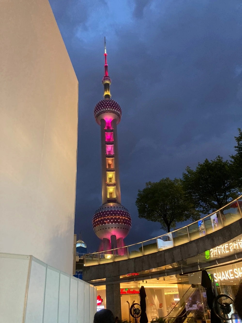 동방 명주[Oriental Pearl TV Tower]는 상하이를 상징하는 랜드마크이다. 구슬을 꿰어 놓은 듯한 외형이 특이하다. 고층 건물들이 옆에 엄청 많은데 그곳에 탑이 있으니 인상 적이다. 한국에도 있는 IFC mall도 있었고 눈에 익은 외국 은행들도 즐비했다. 동방명주탑은 미디어 그룹인 동방명주의 방송 수신탑으로 1994년 준공되었다고 한다. 우뚝 솟은 탑의 높이는 468m이다.