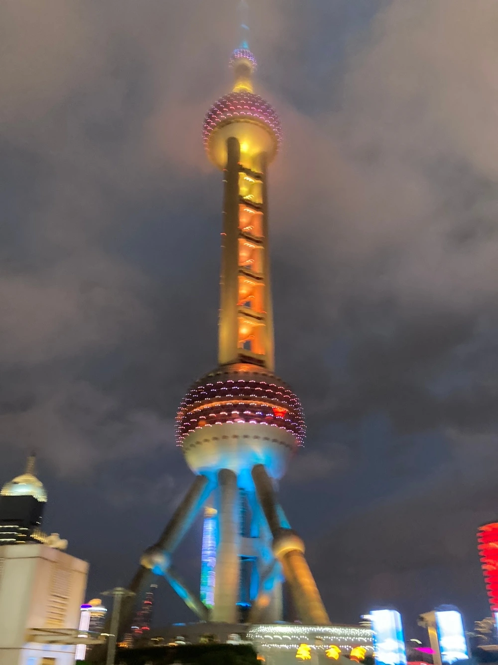 동방 명주는 낮에 보는 것보다는 밤이 더 화려했다. 동방 명주 엘리베이터를 타고 꼭대기까지 올라갈 수도 있다. 남편은 10년 전에 올라갔었다고 했는데 이번엔 사람이 너무 많아서 올라갈 생각을 하지 못했다. 탑 중간에 돌아가는 레스토랑도 있다고 했는데 예약을 못했기에 아쉽지만 다음을 기약했다.