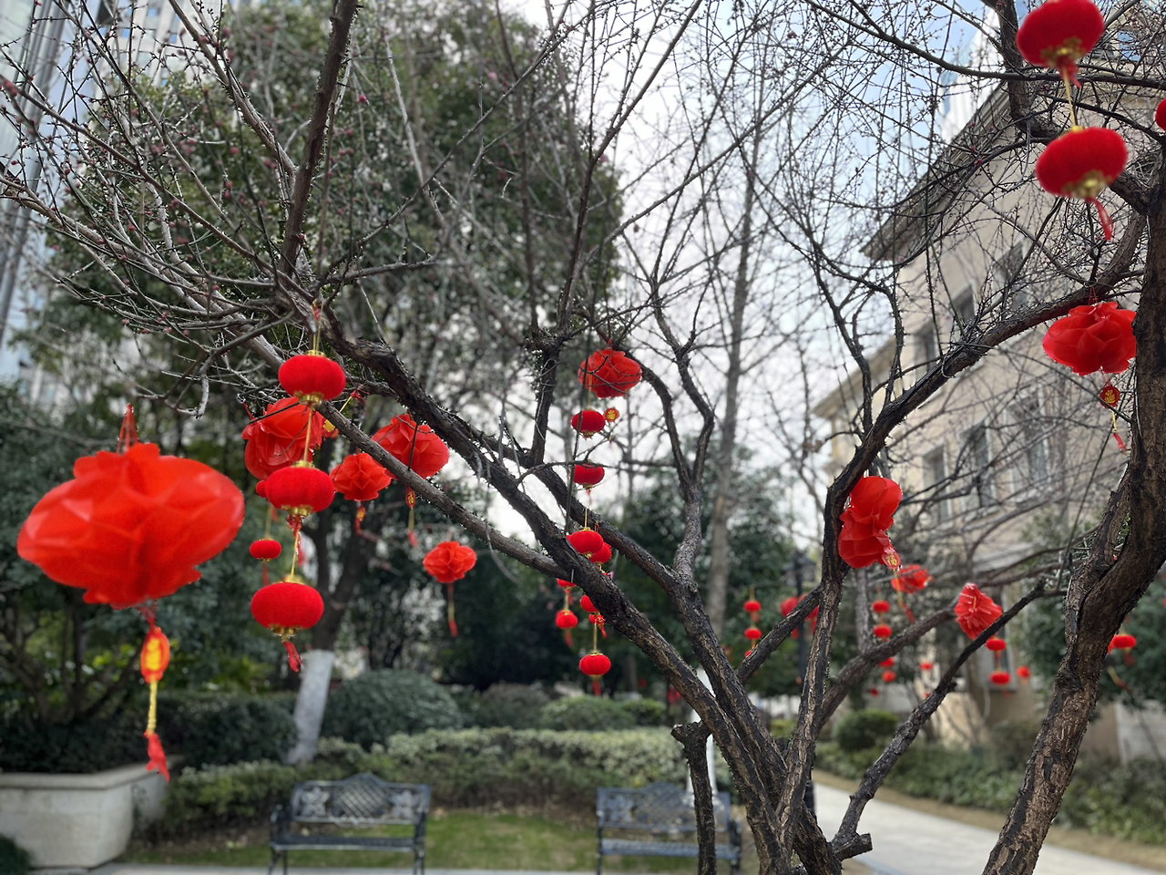 오늘 동네 한 바퀴를 돌았는데 온통 빨갛다. 아파트 단지 안에 모든 나무에 빨간 호롱등이나 꽃처럼 생긴 것을 달아놓았다. 처음에 작년에 왔을 땐 너무 무서웠다. 동네도 익숙하지 않았는데 생경한 빨간색 세상이 꼭 영화 속에 들어온 느낌이었다. 하지만 두 번째 빨간색 세상을 본다고 이번엔 장식들이 이뻐 보여서 사진을 찍어보았다.