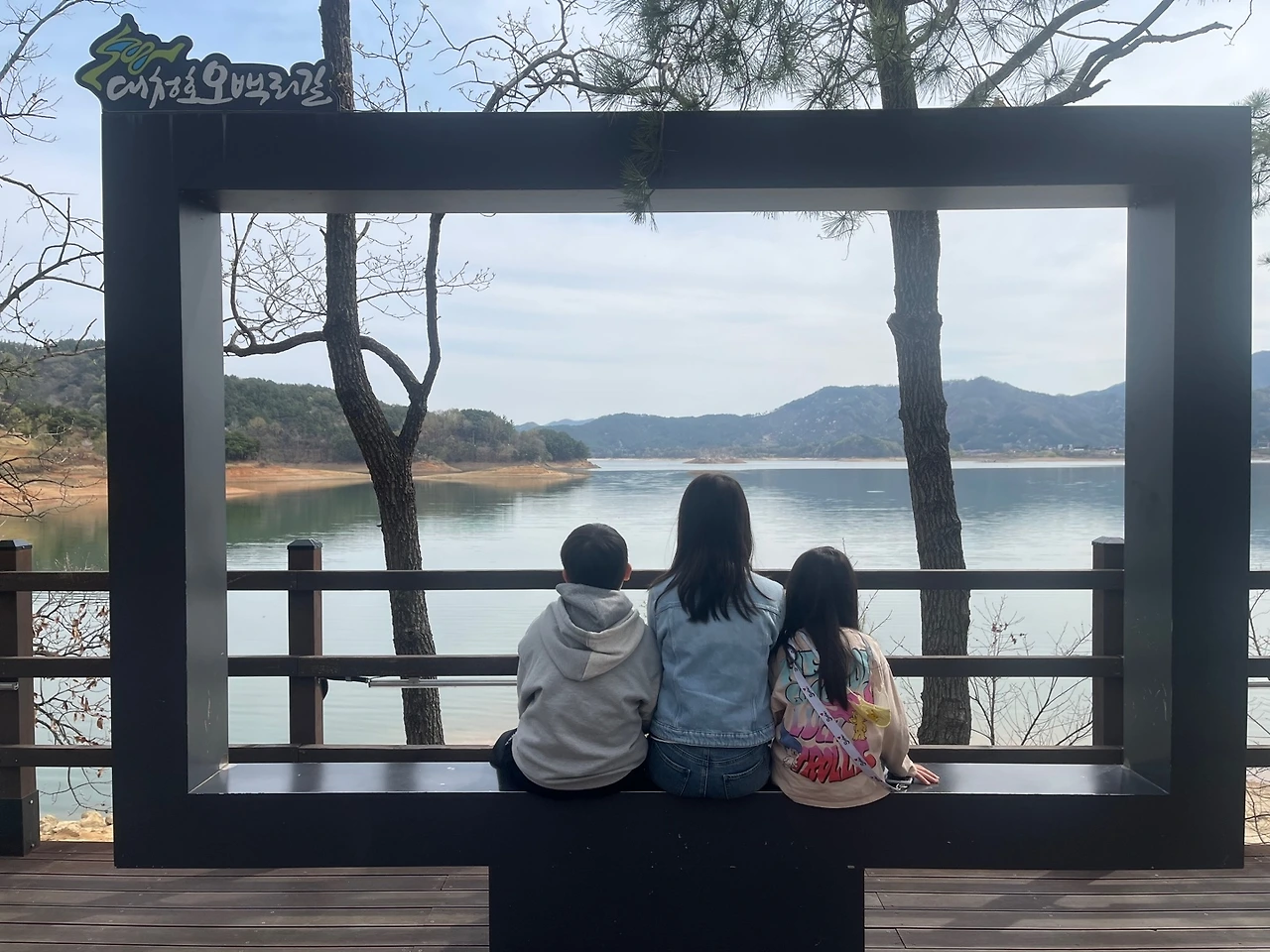 각설하고 친정 식구들이랑 대전 근교 여행을 했었다. 대청호 오백 리 길이 산책 코스로 좋다고 해서 아침 일찍 나섰다. 걷기 좋게 데크가 깔려 있어서 아이들과 신나게 뛰어서 산책이 가능했다. 언니 오빠와 놀고 싶다고 학교에 체험 학습을 낸 조카까지 아이들 셋과 엄마 아빠 그리고 신랑과 나는 같이 산책을 했다.