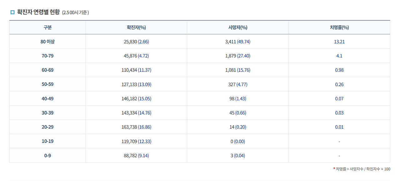 현재 코로나 바이러스의 치사율은 0.71%로 독감의 0.1%에 비하면 제법 높은 수준이나, 국내 오미크론 감염자 9860명을 분석한 결과 오미크론의 치명률은 0.16%로 델타의 5분의 1 수준이라는 중앙방역대책본부의 발표가 있었다 하니 이 정도면 독감을 아주 약간 상회하는 수준으로 약화됐다고 보는 게 맞는다. 또한 질병의 특성상 고령층을 제외하면 치명률이 0%에 수렴하는 상황이라 모두에게 심각한 결과를 초래한다고 보기에는 무리인 것 또한 사실이다.