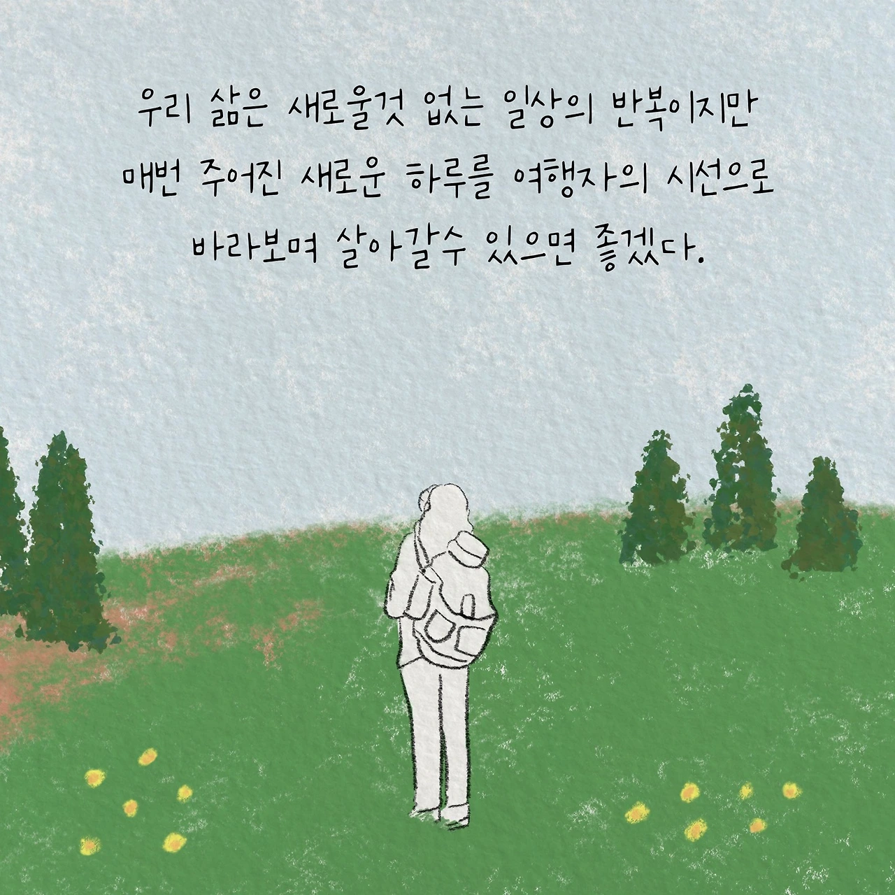 매번 주어진 새로운 하루를 여행자의 시선으로 바라보며 살아갈 수 있으면 좋겠다.