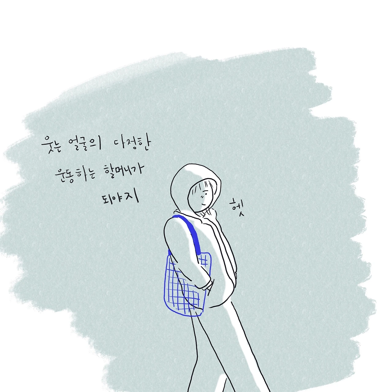 웃는얼굴의 다정한 운동하는 할머니가 되야지