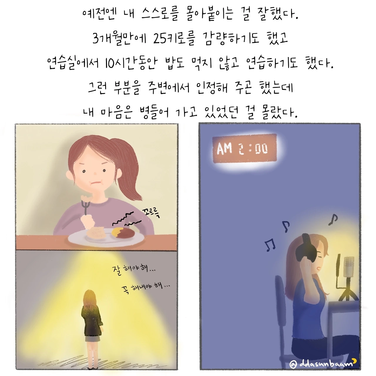 건강한 삶의 패턴을 반복하는 힘은 건강한 내면의 힘에서 나오고, 나를 몰아세우지 않고