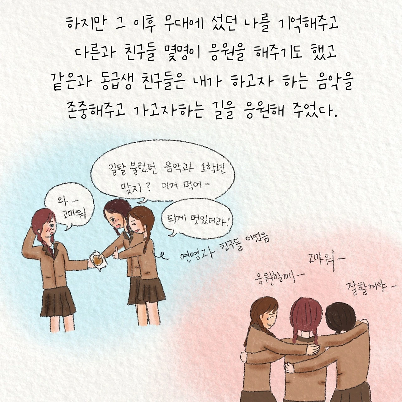 18년간 음악을 하다 지금은 심리상담 공부를 하며 노래하고 그림을 그리고 있습니다. 나를 찾아가고 있는 여정을 통해 서로의 어둔밤에 따듯한 한조각이 되길 바래봅니다.