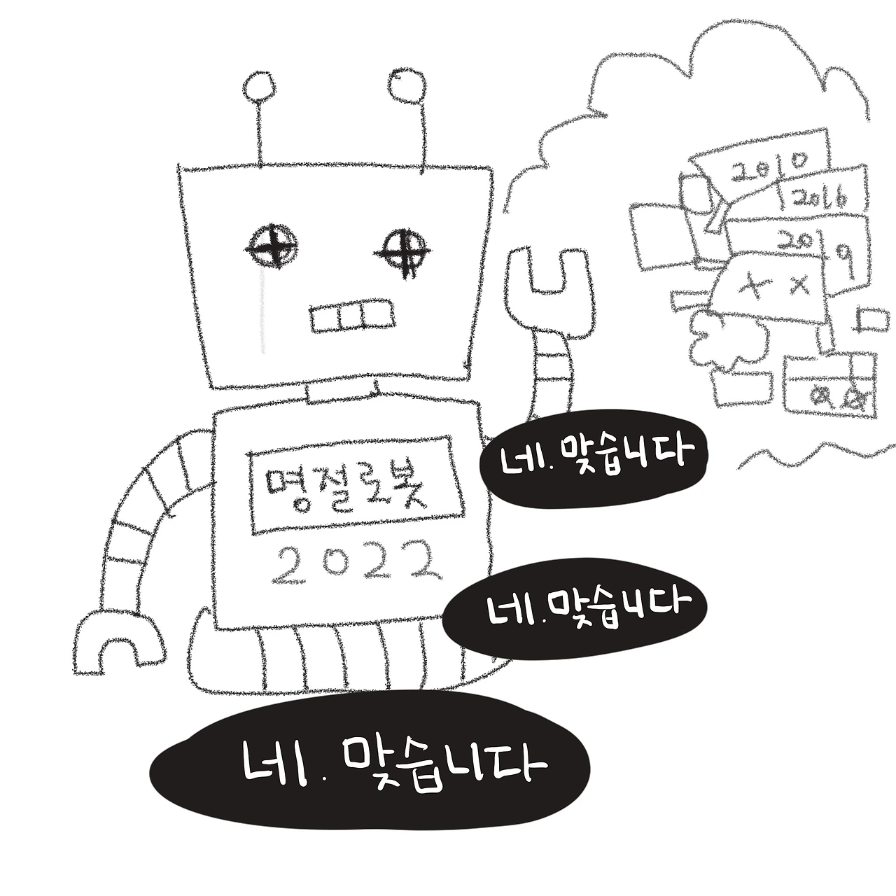 나는 매 명절마다 세 번의 거짓말을 한다. 원래는 더 많이 혹은 대답을 하지 않았지만, 29년간의 숙련도로 가장 짧게 명절을 지나갈 수 있는 대답 구조를 만들었다. 위의 대답이 나오기까지는 수많은 시행착오와 거짓말 그리고 눈물이 있었다.