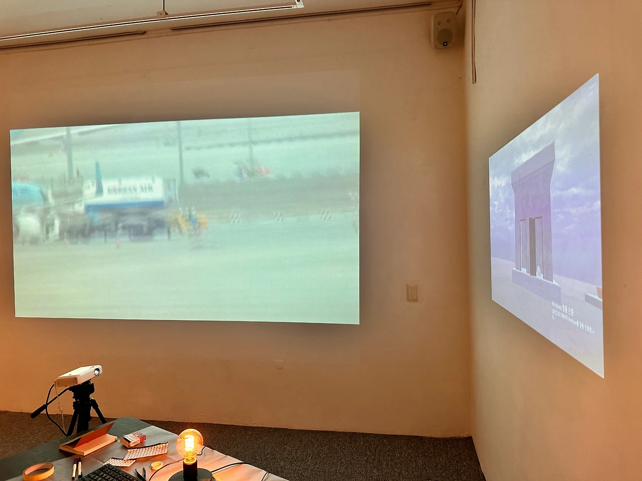 캔버스 동선 이후 영상작품인 궤도가 동선에 있습니다.