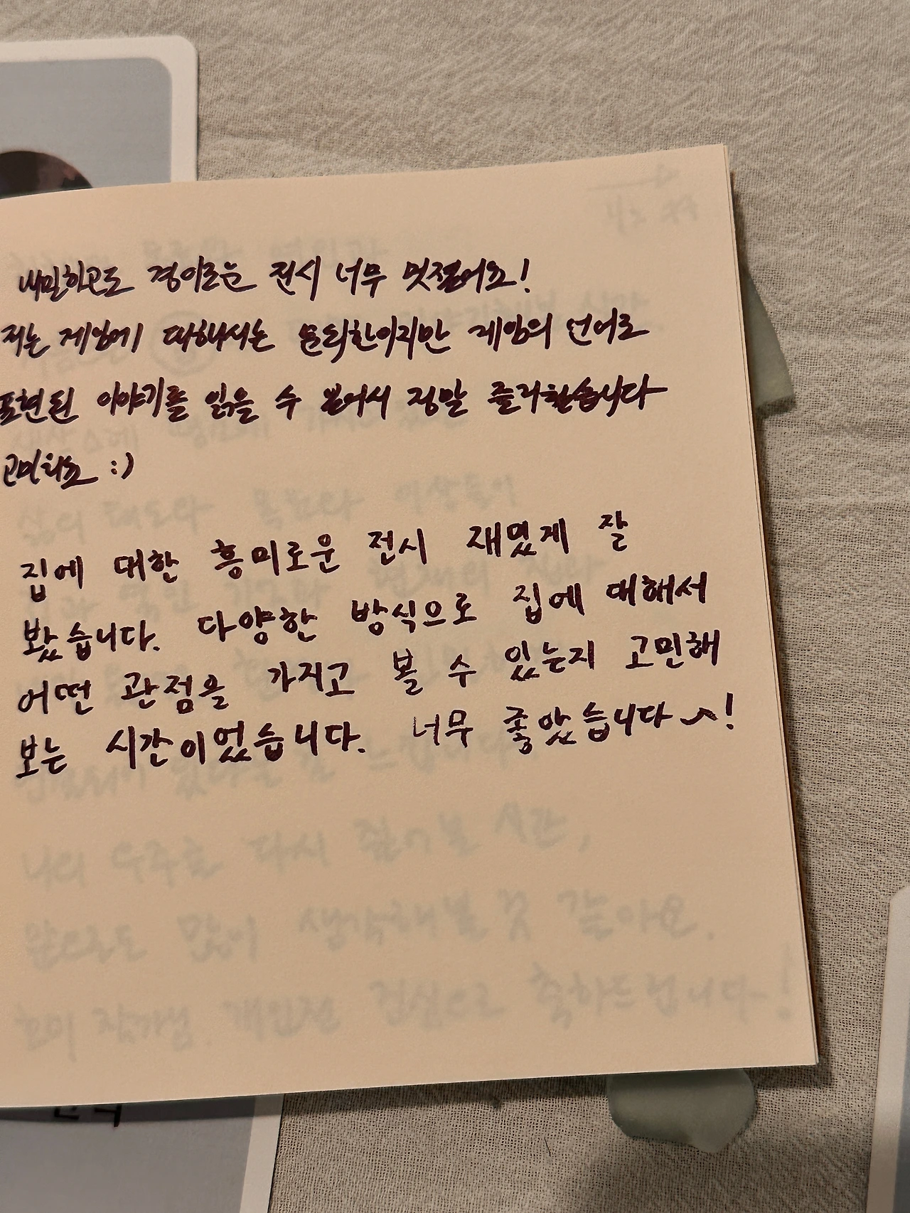 관람을 더 풍성하게 만들어 줄 것입니다. 앞 장에는 전시 서문을, 뒷장에서는 대화하듯 쓴