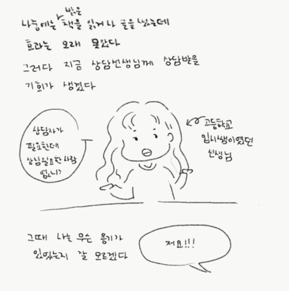 같은 일을 겪은 우리 언니 조차도 상담 시도에서 몇 번이고 뛰쳐나왔다고 한다.