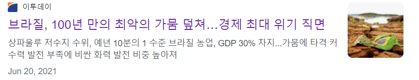 브라질에 닥친 각종 이상기후 현상이 발생했기 때문이다.