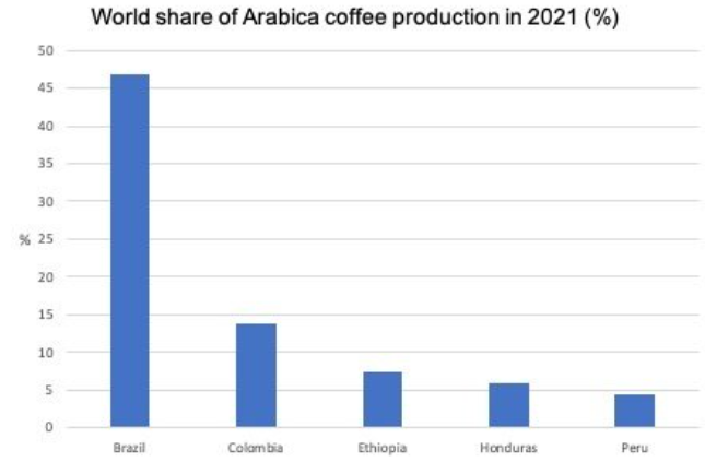 2021년 수많은 브라질 커피 농가들에 닥친 이상기후 현상이 가장 큰 영향을 끼쳐
