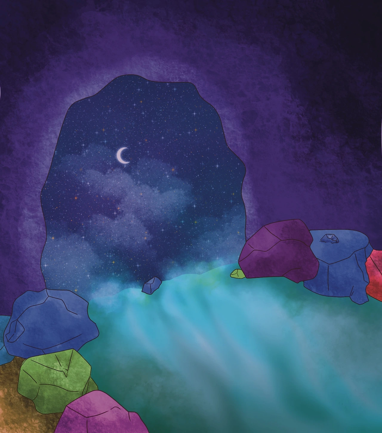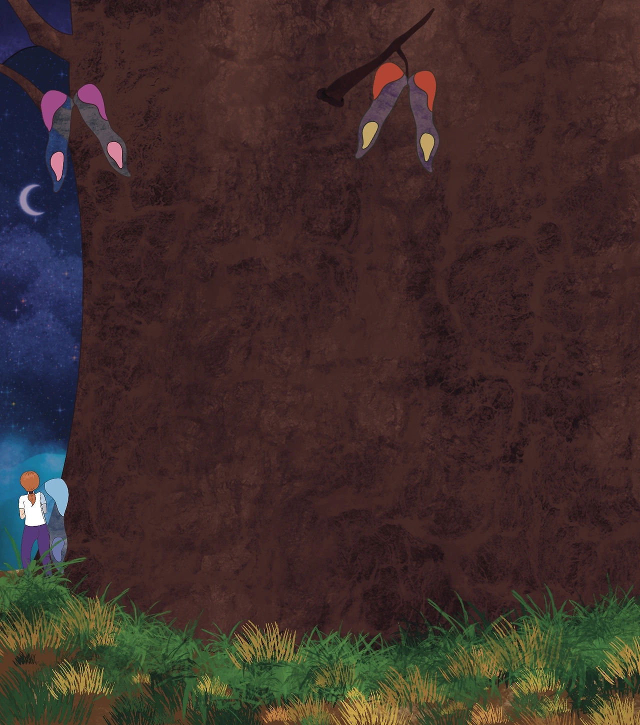 그 사이 숲에는 어느새 어둠이 깔렸다. 밤새도록 나무를 돌아 걷던 루미나는 나뭇잎 사이로 들려오는 희미한 물소리를 들었다. 그곳에는 날개 나무가 감춰 둔 에메랄드빛 호수가 빛나고 있었다.