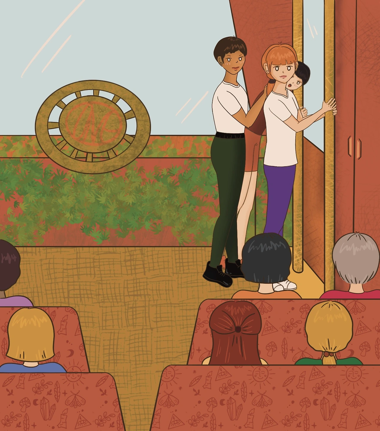 이연과 은정이 어리둥절한 표정으로 루미나를 빤히 바라보는 동안, 루미나는 말없이 열차 내부를 살폈다. 겉보기에 열차 내부는 잘 정돈된 모습이었다. 정갈하게 마감된 나무 의자들과 붉은색 포인트들이 고풍스러운 분위기를 자아냈다.