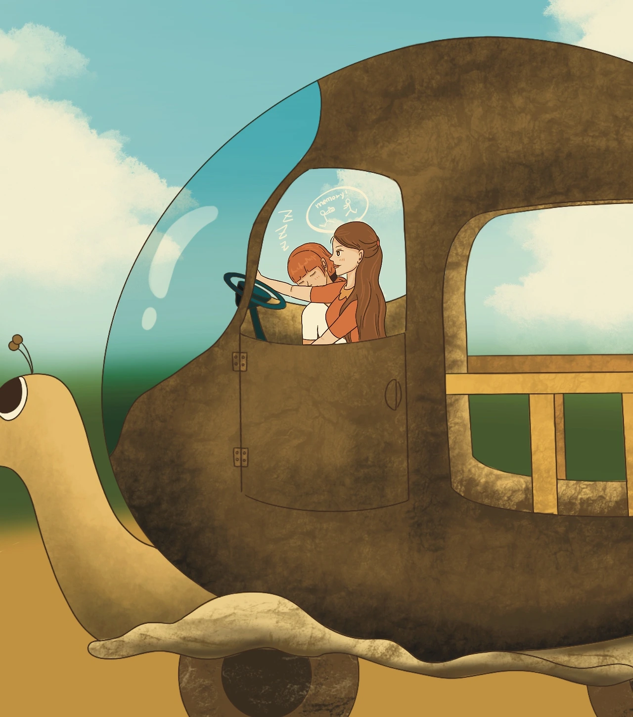 달팽이 버스는 느리지만 걷는 것보다는 빠르게 그들을 다음 세상으로 데려갔다. 하지만 너무 느릿하게 달린 탓에, 소피아는 루미나의 옆자리에 기대어 이내 잠에 들고 말았다.
