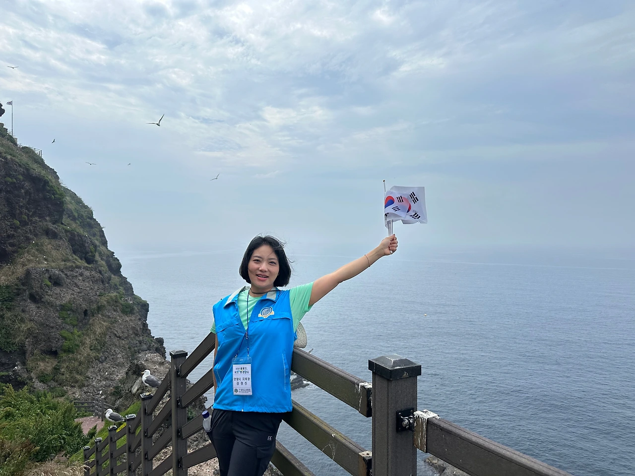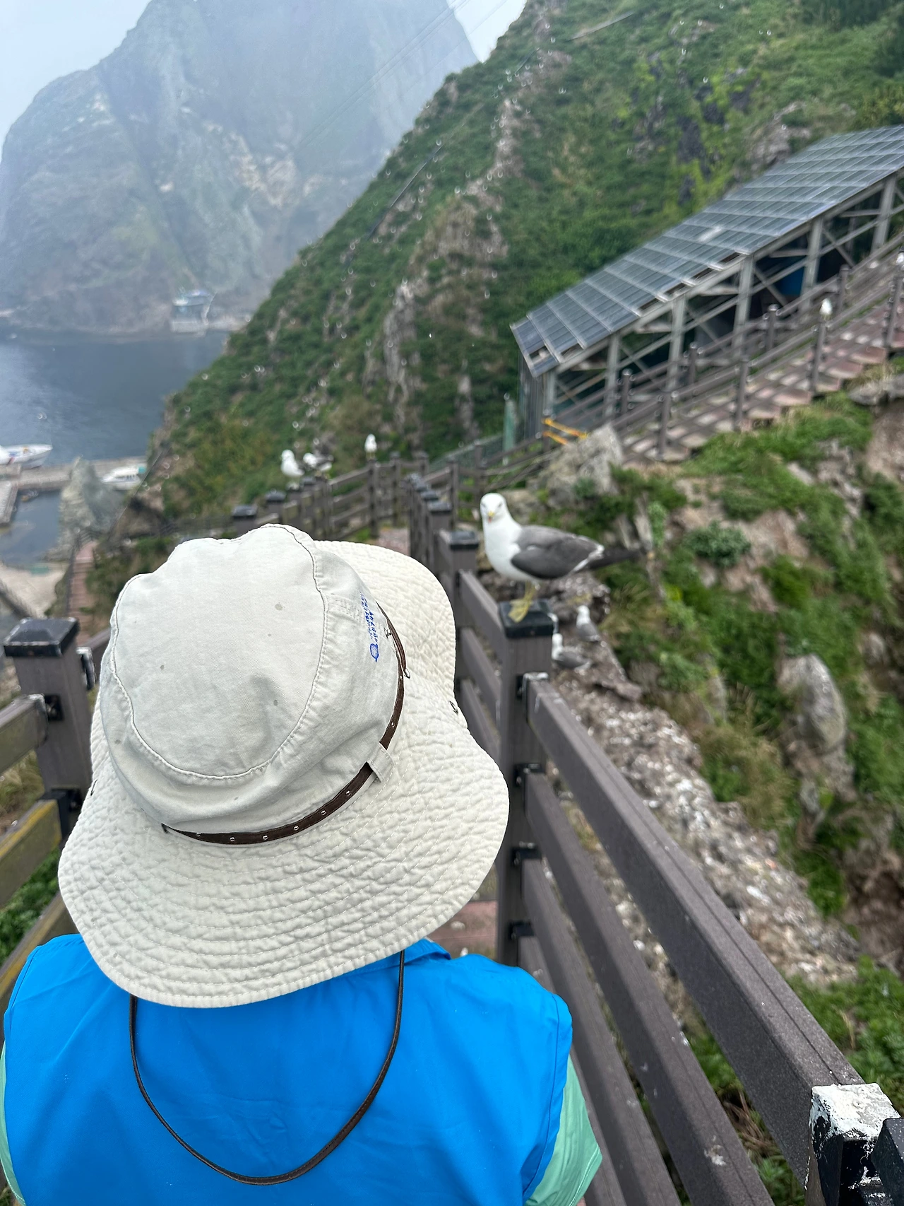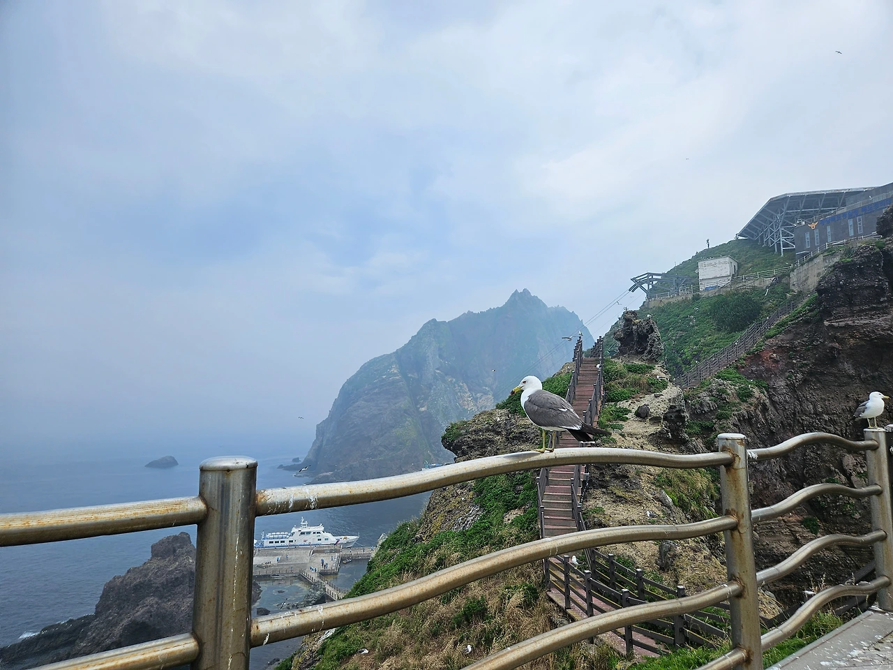 우리에게 한 시간이라는 시간만 주어졌으니 빠르게 줄을 서 이동하며 우산봉 전망대까지 올라간다. 독도는 외롭지 않다. 독도의 주인이 누구인지는 올라가는 동안 알게 되었다. 바로바로 괭이갈매기.