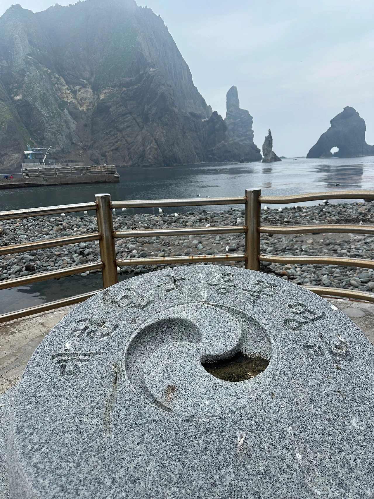 바다는 잔잔하고, 고요하고 투명했다. 의아하게도 플라스틱이 떠다녔다. 아주 멀리서 버린 낯익은 500ml PT는 기나긴 바다여행을 마치고 독도에 당도했을 것 같다. 동동 떠다니는 플라스틱을 울타리 넘어 들어가서 건져와? 1초간 망설임. 아이러니하게도 생태정화활동을 위해 건져야 할 플라스틱은 들어갈 수가 없어 여기 계신 분들께 맡겨야 했다. 1시간이라는 주어진 시간 안에 보고싶음만큼 실컷 머물면 좋으련만 상당히 쪼여서 집중을 할 수 없는 짧은 시간이다. 눈 앞에 펼처진 광경을 찍는 휴대전화 셔터를 두고 여러 모로 갈등을 때렸다. 찍지말고 '눈에 실컷 담고갈까', '아냐 찍어 남겨야 해' . 여튼 방해요소는 맞다. 이명박대통령 때 세웠다는 기념비는 앞에 "독도", 뒤에는 "대한민국"이 새겨져있다. 서서 찍고, 앉아서 찍고 기념비적인 한 컷을 위해 독도 앞의 경건함은 이것으로 진하게 대신한다. 곳곳이 아름다워 어디서 사진을 더 찍어야 하나 마음이 어수선하기도 했다. 무리들 속에서 자꾸 떨어지는 것은 기분 탓이 아니다. 장엄함과 경건함, 감사함과 미안함 등 여러 감정이 한데 뒤엉킨 복잡스러운 심정을 싣고 다시 배에 탔다. 가는데 두 시간반, 머무는데 한 시간, 다시 가는 데 두 시간반 . 총 6시간만에 울릉도에 도착했다.