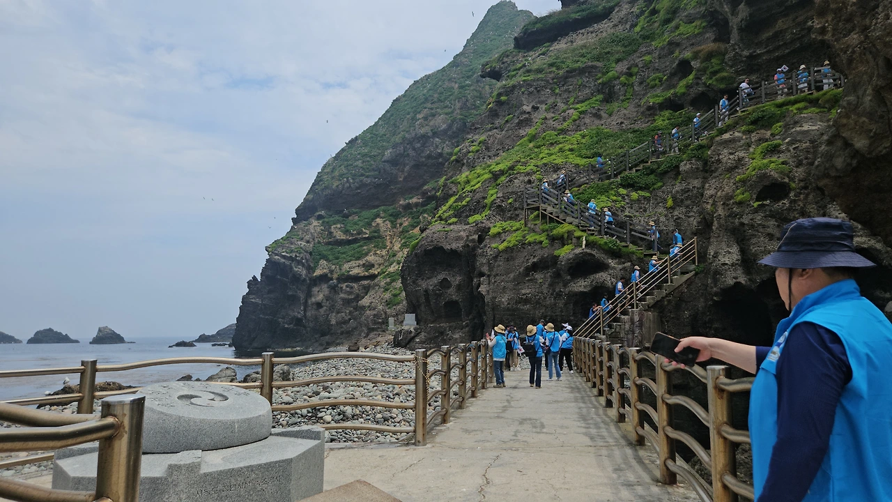 독도는 보호구역이라 일반인에게 접근이. 제한적인 곳이다. 게다가 1년 중 150일 정도만이 접안이 가능하다 . 때에 따라 더 어렵기도 하단다. 바람의 세기나 해류, 파도 높이 등 변화무쌍한 기상변화에 연중 40%만이 독도에 접안하고 15-30프로 정도가 결항된다. 실제 운항이 되어도 접안이 어려운 경우가 잦다고 한다. 우리는 이날 독도를 만났으나 다음 날은 접안도 어려웠다고 하니 천운을 가지고 간 탐방이 맞다.