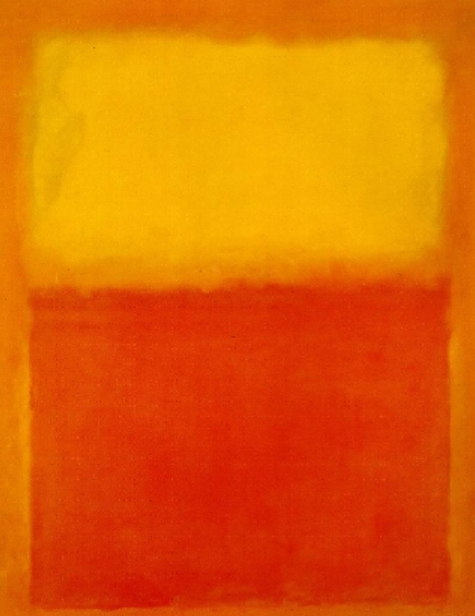 마크로스코의 〈Orange and Yellow>는 세로 캔버스에 오렌지색과 노란색의 사각형이 겹겹이 배치되어 있다. 경계는 날카롭지 않고 부드러우며 번지듯 처리되었다.