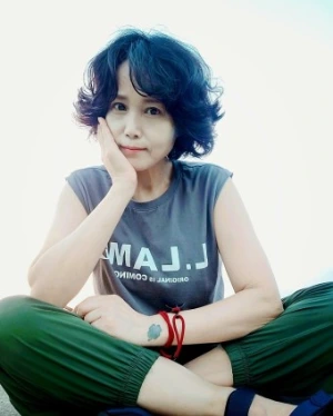 김미량 시인, 1970년 대전에서 태어났다 2009년 [시인 동네]로 등단 14년 만에 달아실 출판사에서 [신의 무릎에 앉은 기억이 있다] 출간