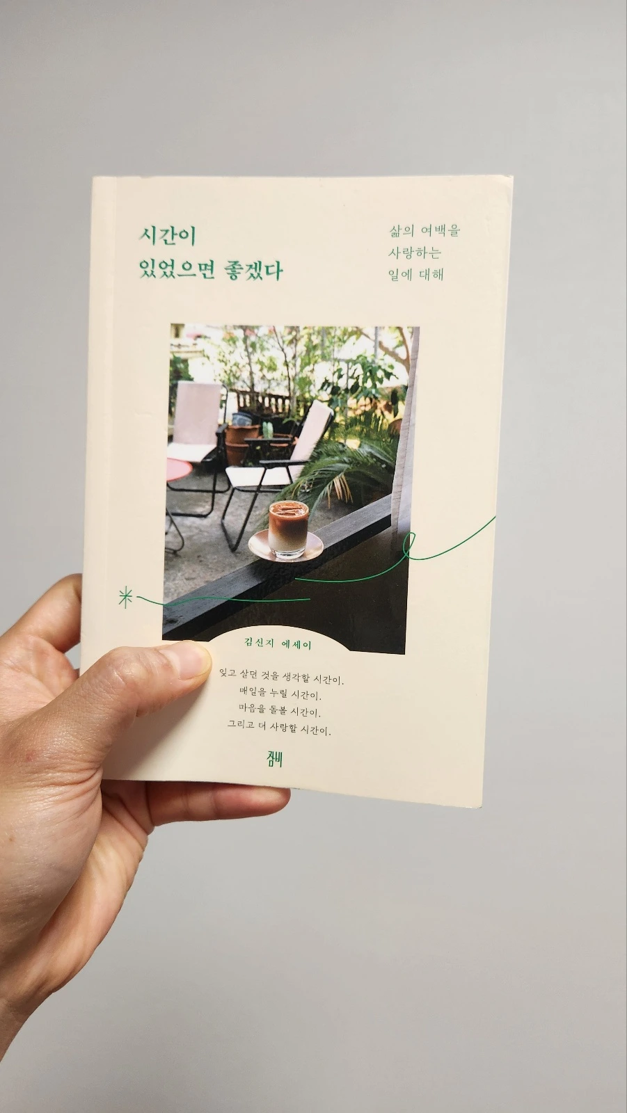 온라인 독서모임으로 시작해 오프라인에서도 종종 만남을 갖는 독서모임 '내 안의 서재' 리더 J 선생님께 작년 내 생일에 받은 김신지 작가님 에세이 - 시간이 있었으면 좋겠다.라는 책을 6월 한 달간 읽었다.