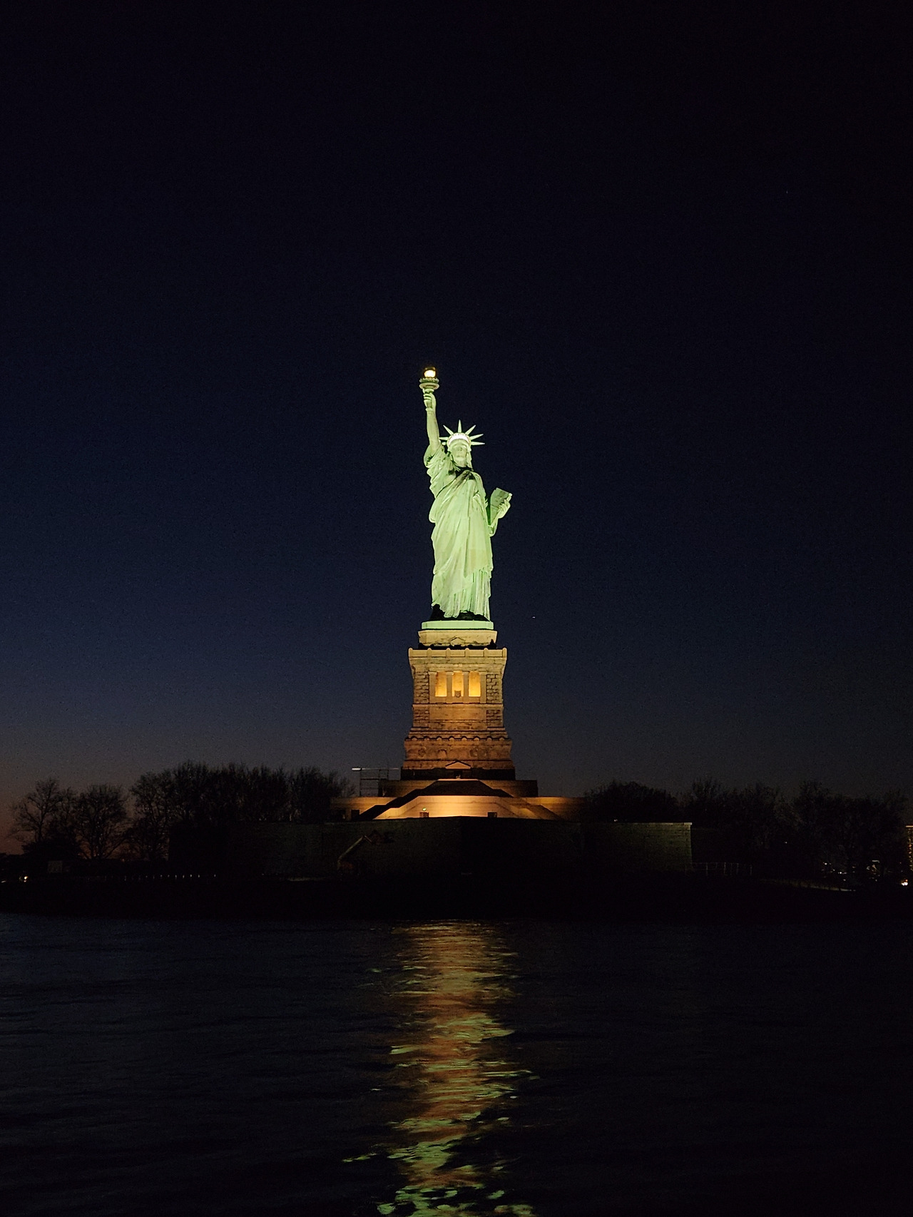 브루클린 다리를 지난 후 해는 빠르게 저물었고, 어둠이 내려앉은 세인트 강 위로 뉴욕의 빌딩 숲은 각자의 조명으로 반짝이기 시작했다. 그리고 그 조명 속에 우뚝 선 자유의 여신상이 눈에 들어왔다.