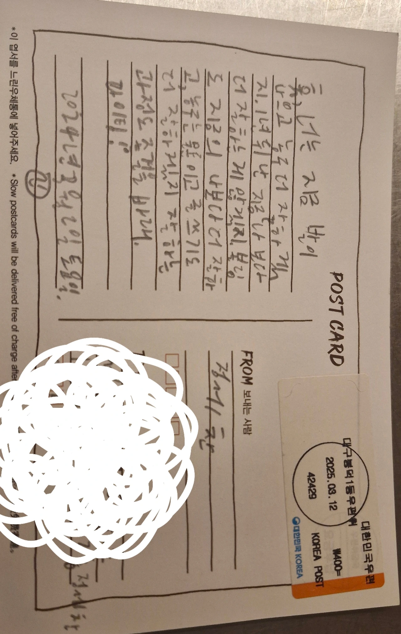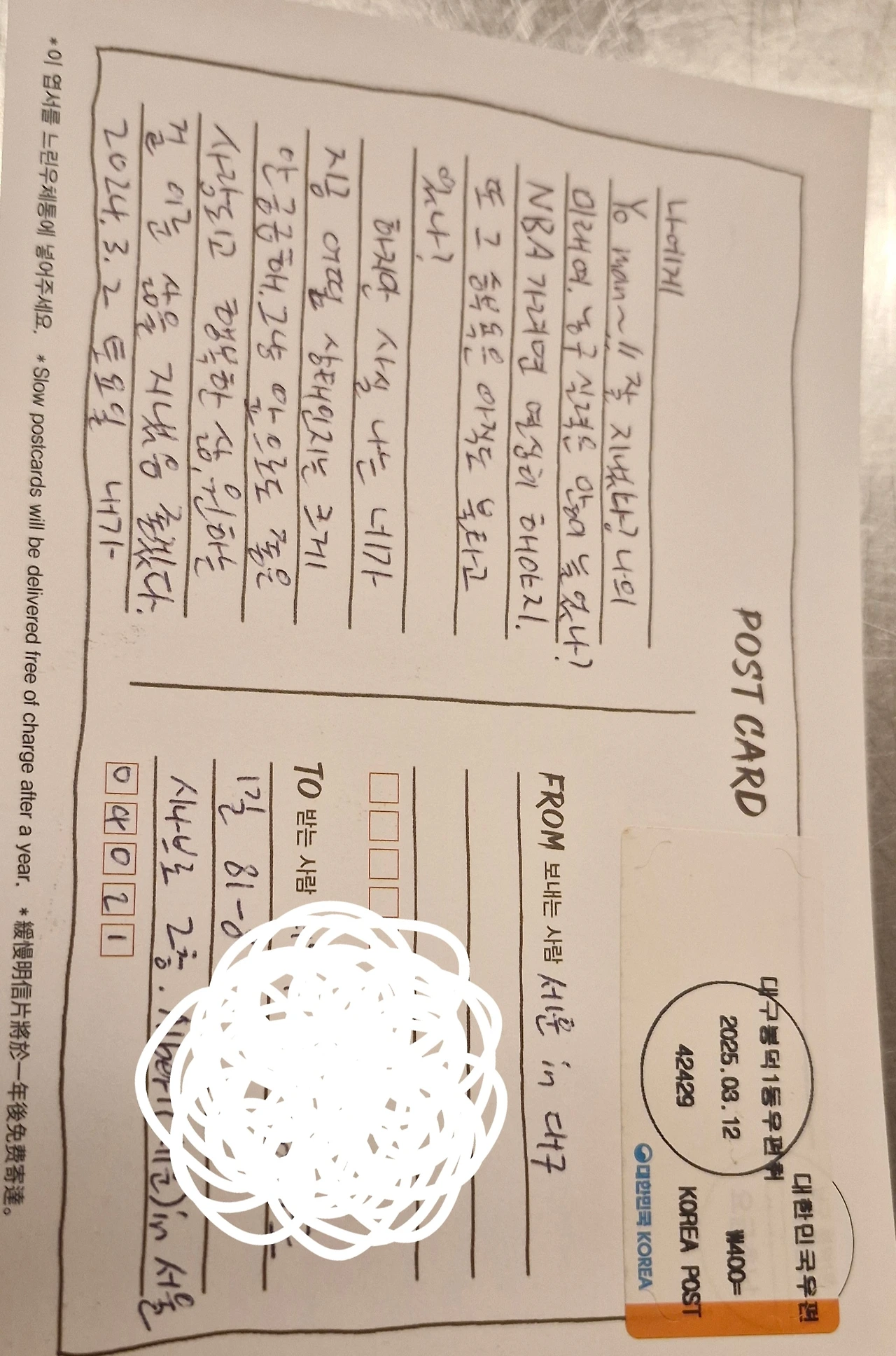 대구 우체국 소인이 찍혀있다. 그제야 어렴풋이 기억난다 일년 전 겨울이...