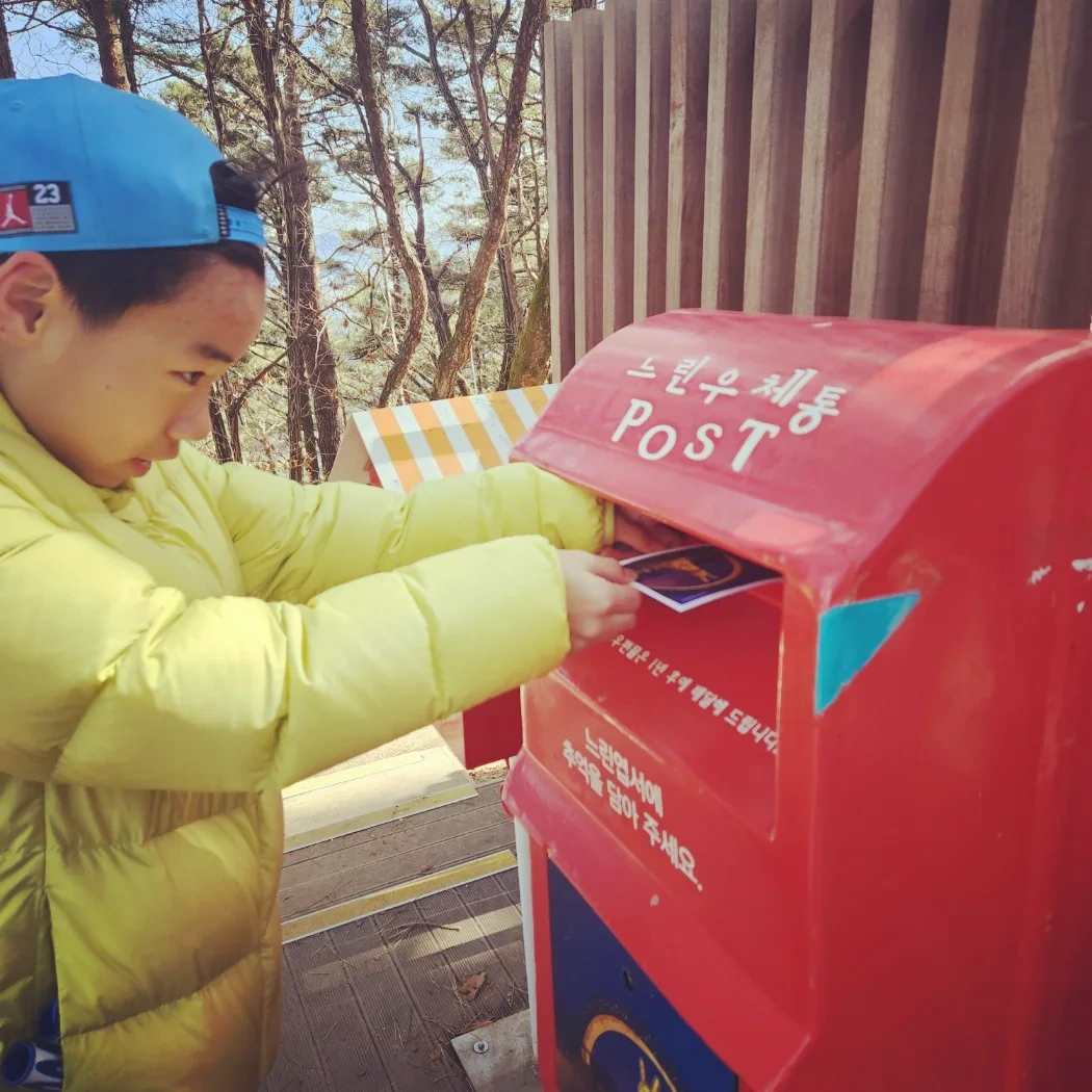 우리는 일년에 두번 방학 때 가족여행을 가는데 작년에는 대구여행을 했더랬다 가끔 느린 우체통이 보일 때가 있는데 우린 재미삼아 엽서를 쓴다.