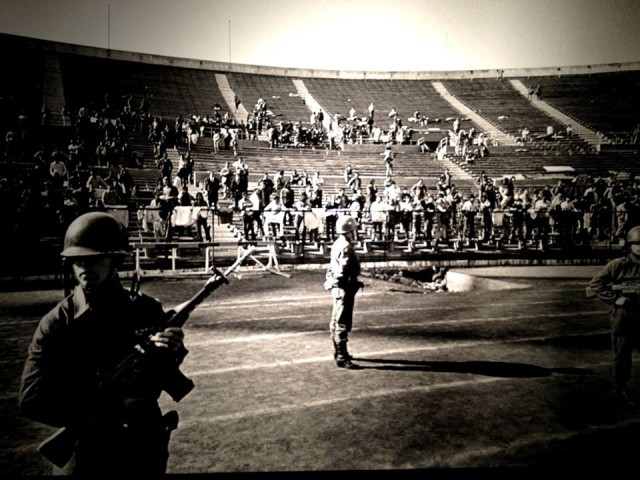 아옌데 지지자들을 운동장에 모아놓고 색출하는 피노체트의 군대